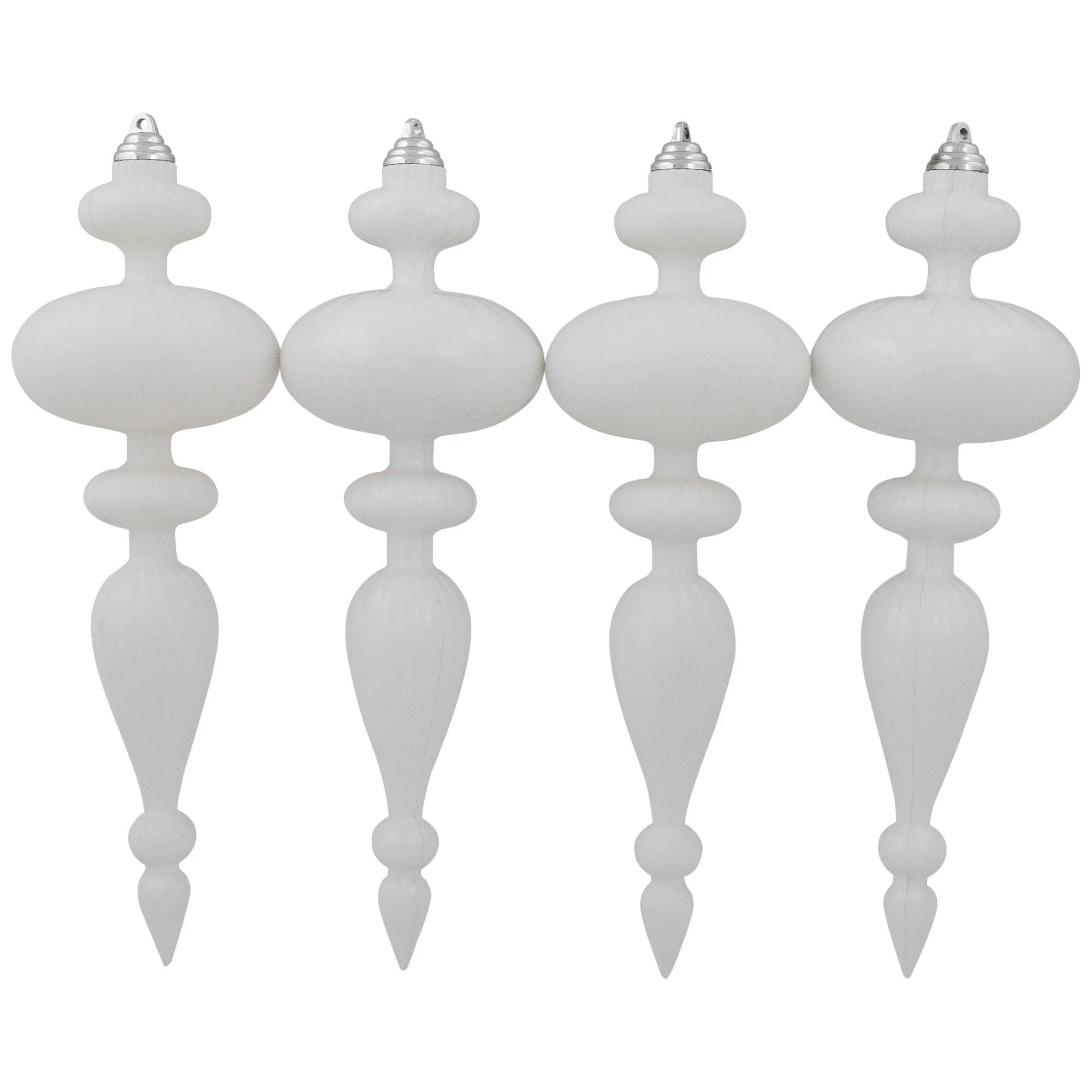 Commercial Size Shatterproof Finial Christmas Ornaments - 14" - White - Set of 4