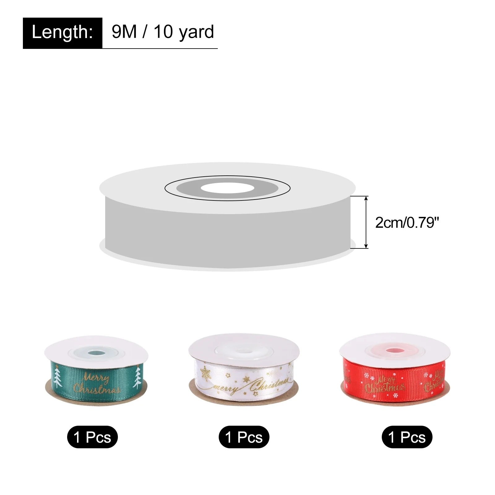 3 Roll Christmas Ribbons Grosgrain 10 Yards Christmas Tree Snowflake Pattern