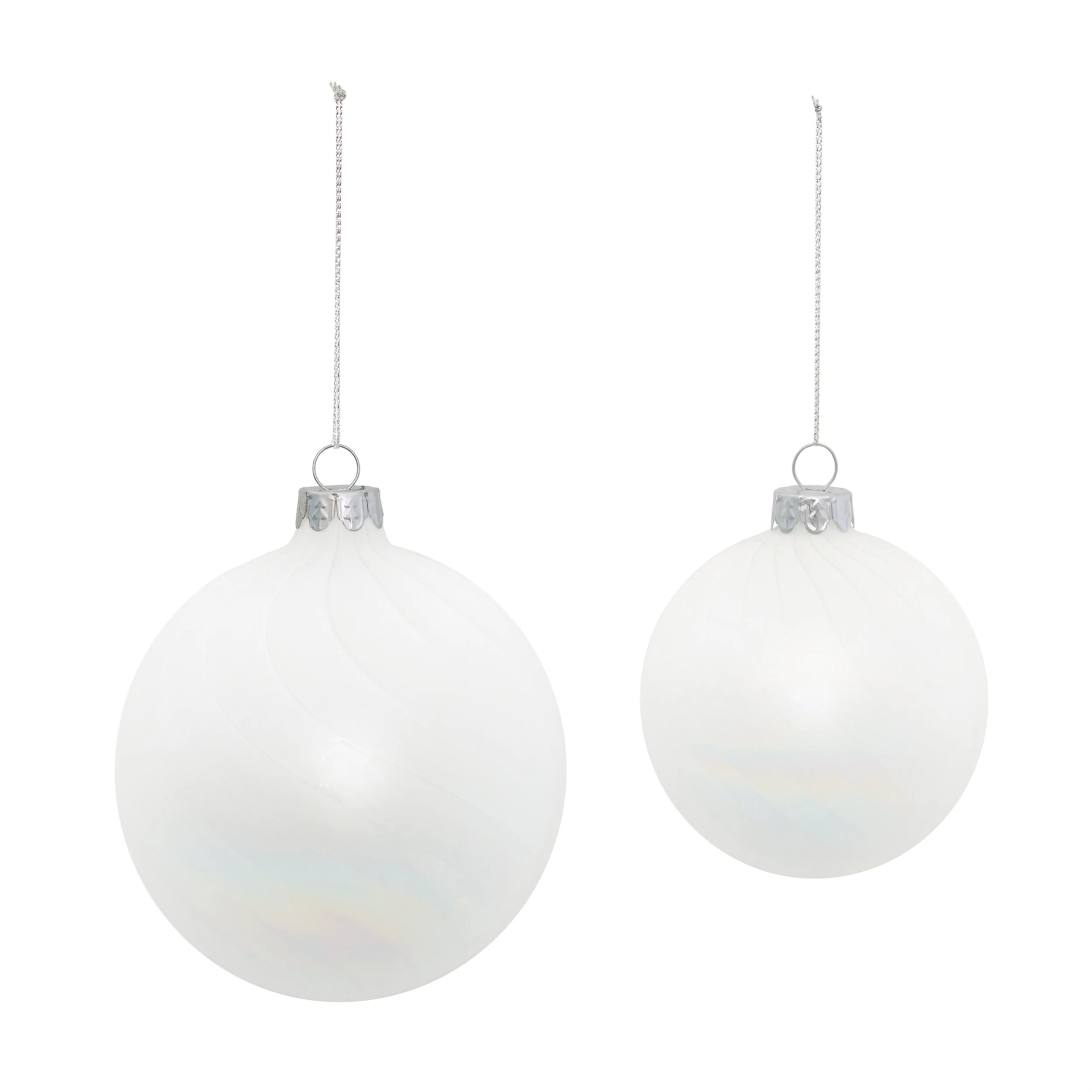 White Iridescent Glass Ribbed Ball Ornaments Set of 12 Holiday Decor - 3.75” x 3.75” x 4” (L x W x H)