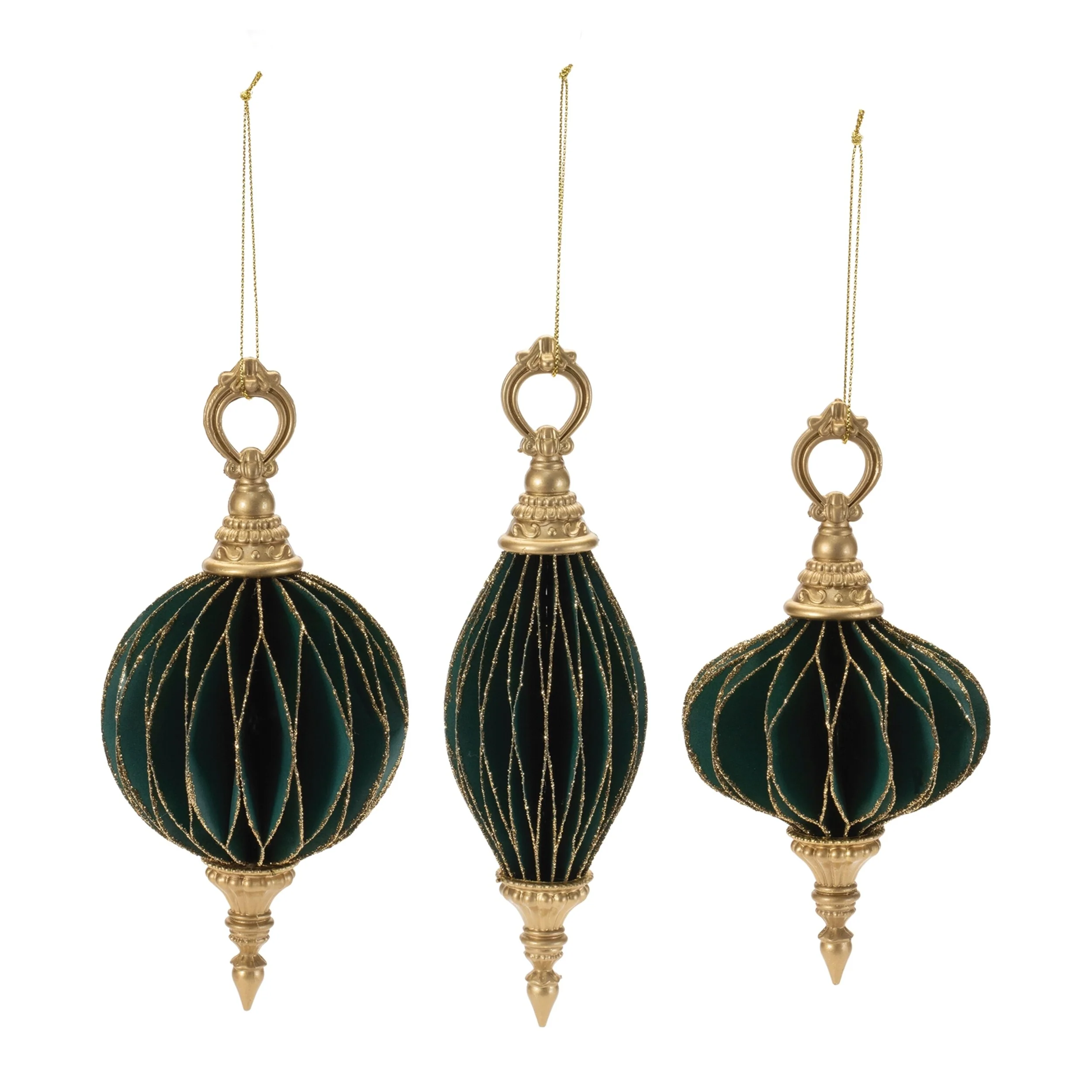 Set of 6 Green Gold Paper Ornaments in Classic Holiday Shapes - 3" x 3.5" x 7"