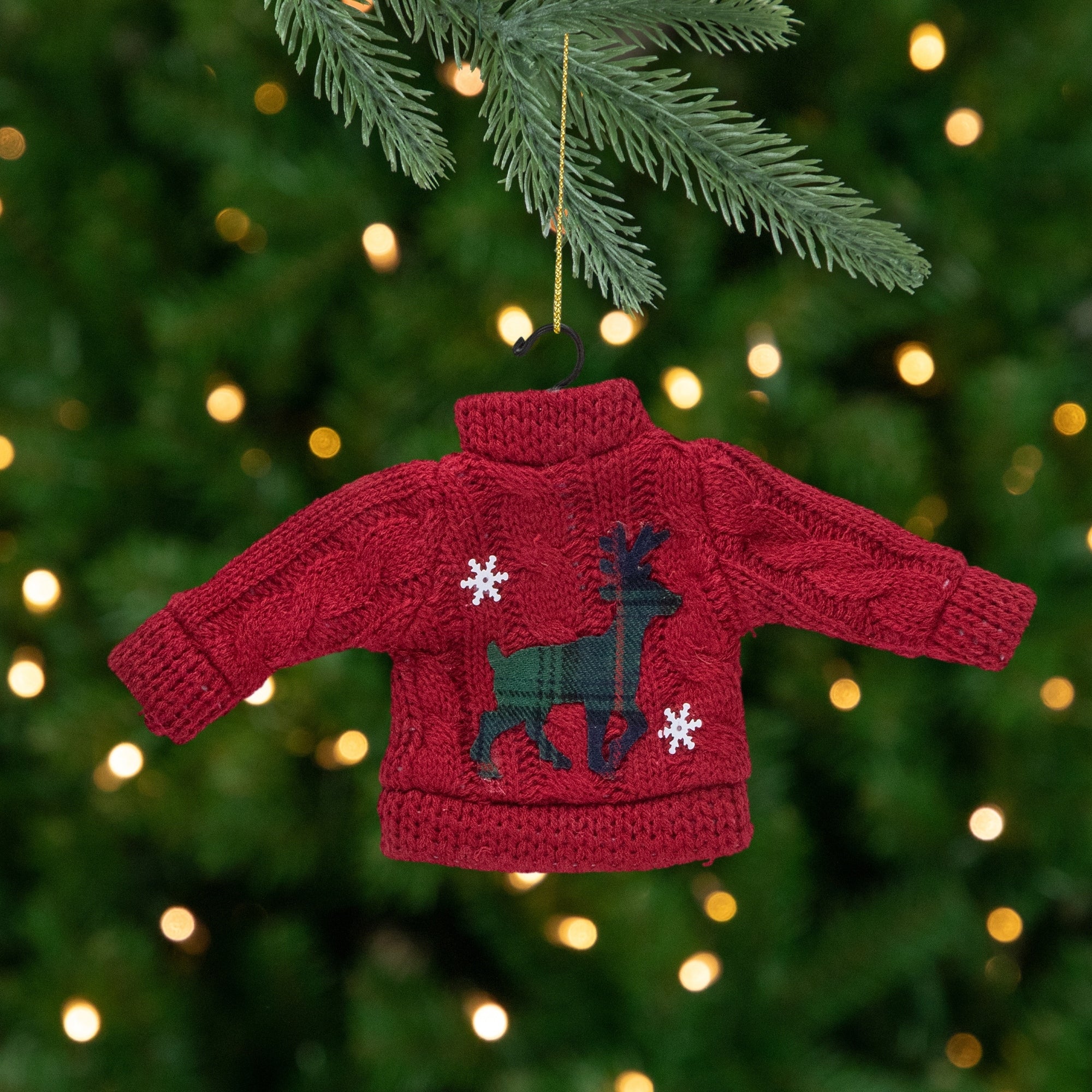 Ugly Sweater with Plaid Reindeer Christmas Ornament - 8" - Red