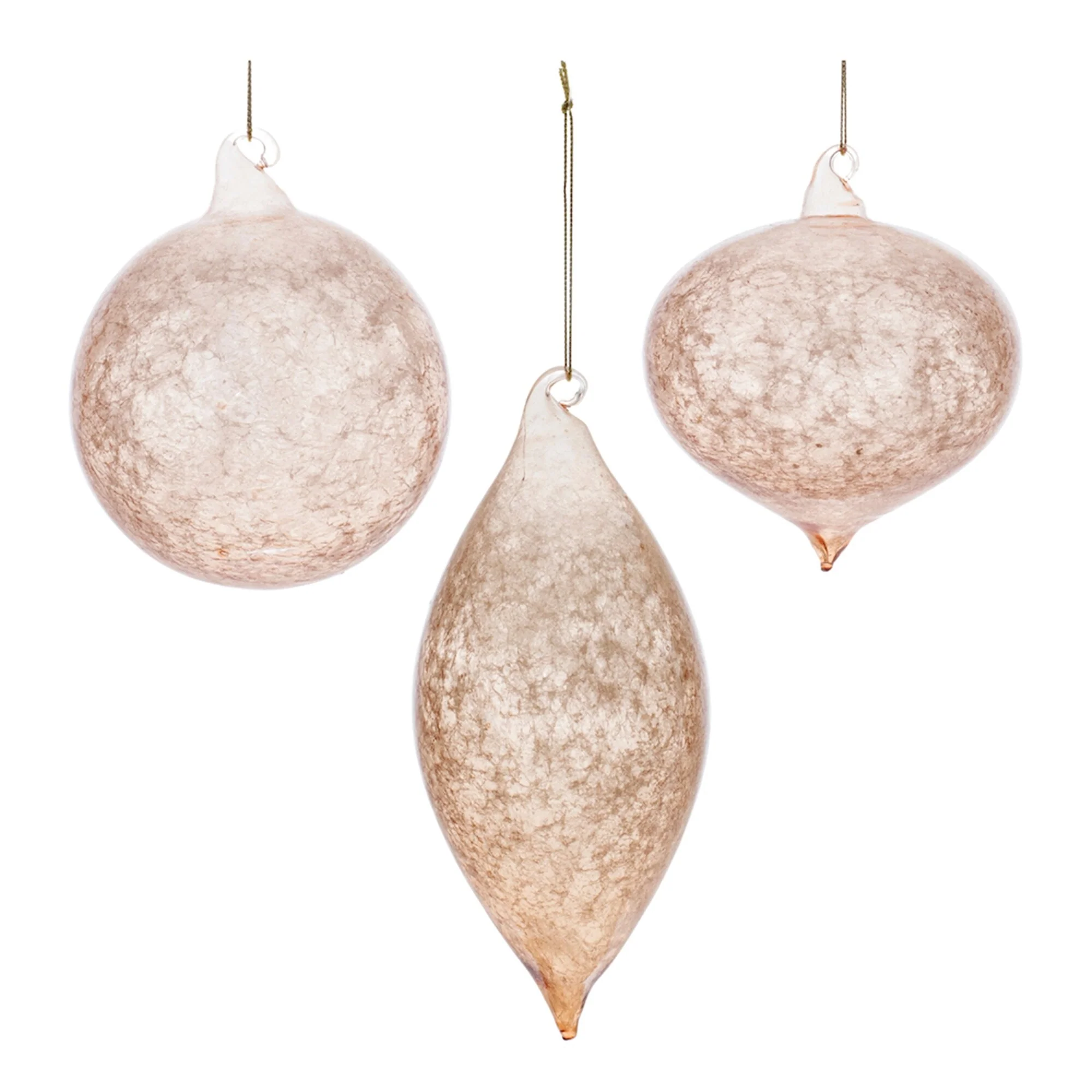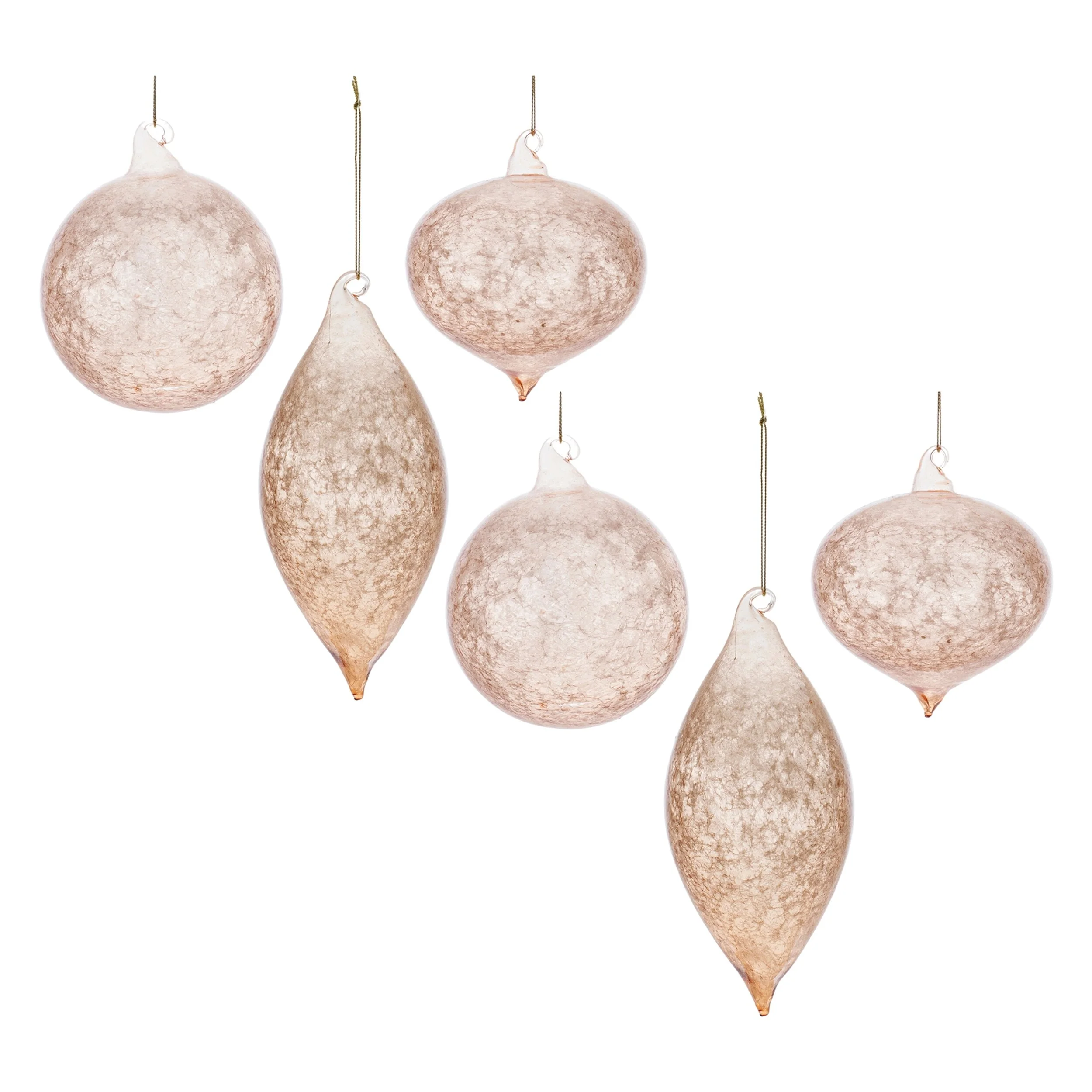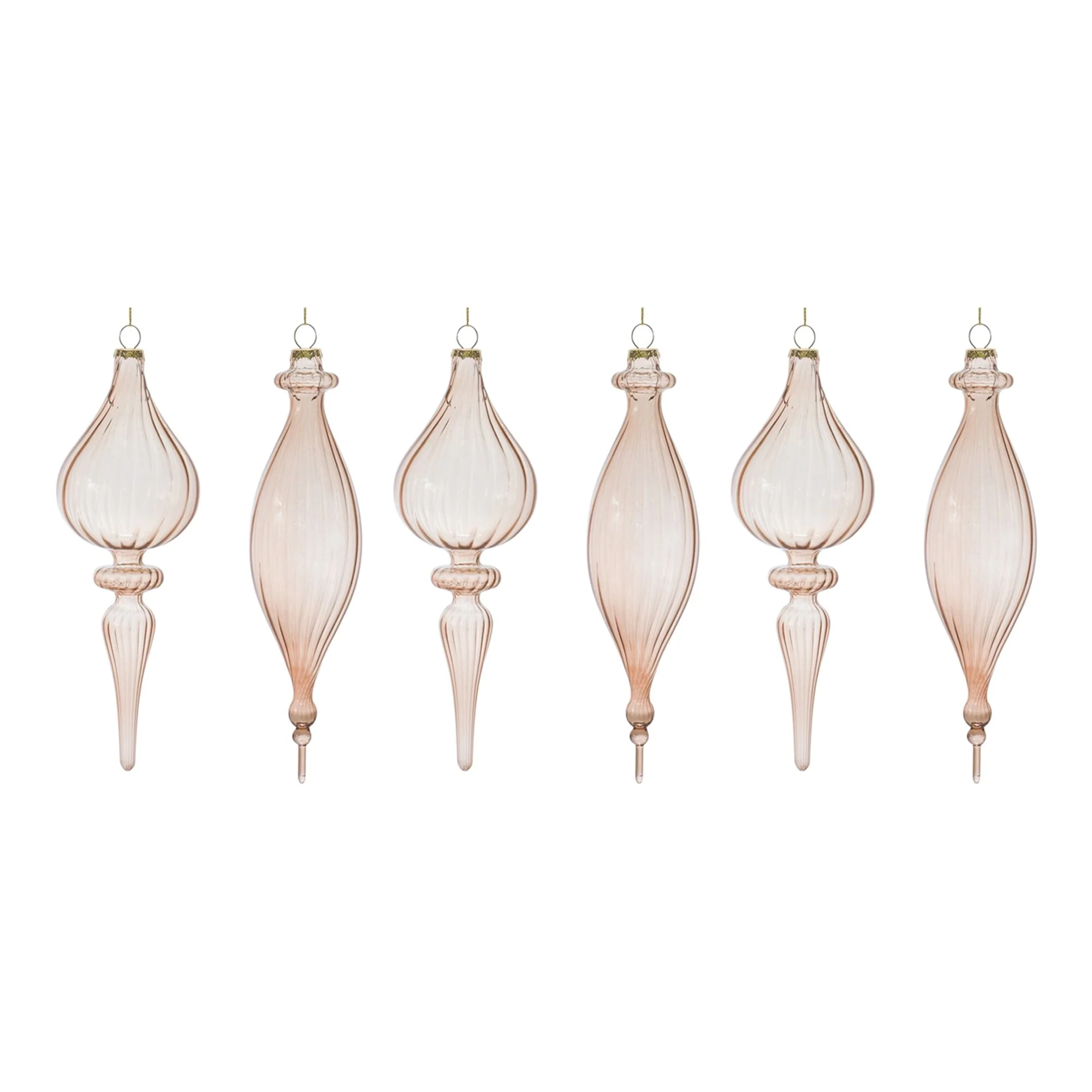 Set of 6 Glass Christmas Ornaments with Gold and Blush Swirl Design - 3 x 3 x 7.25