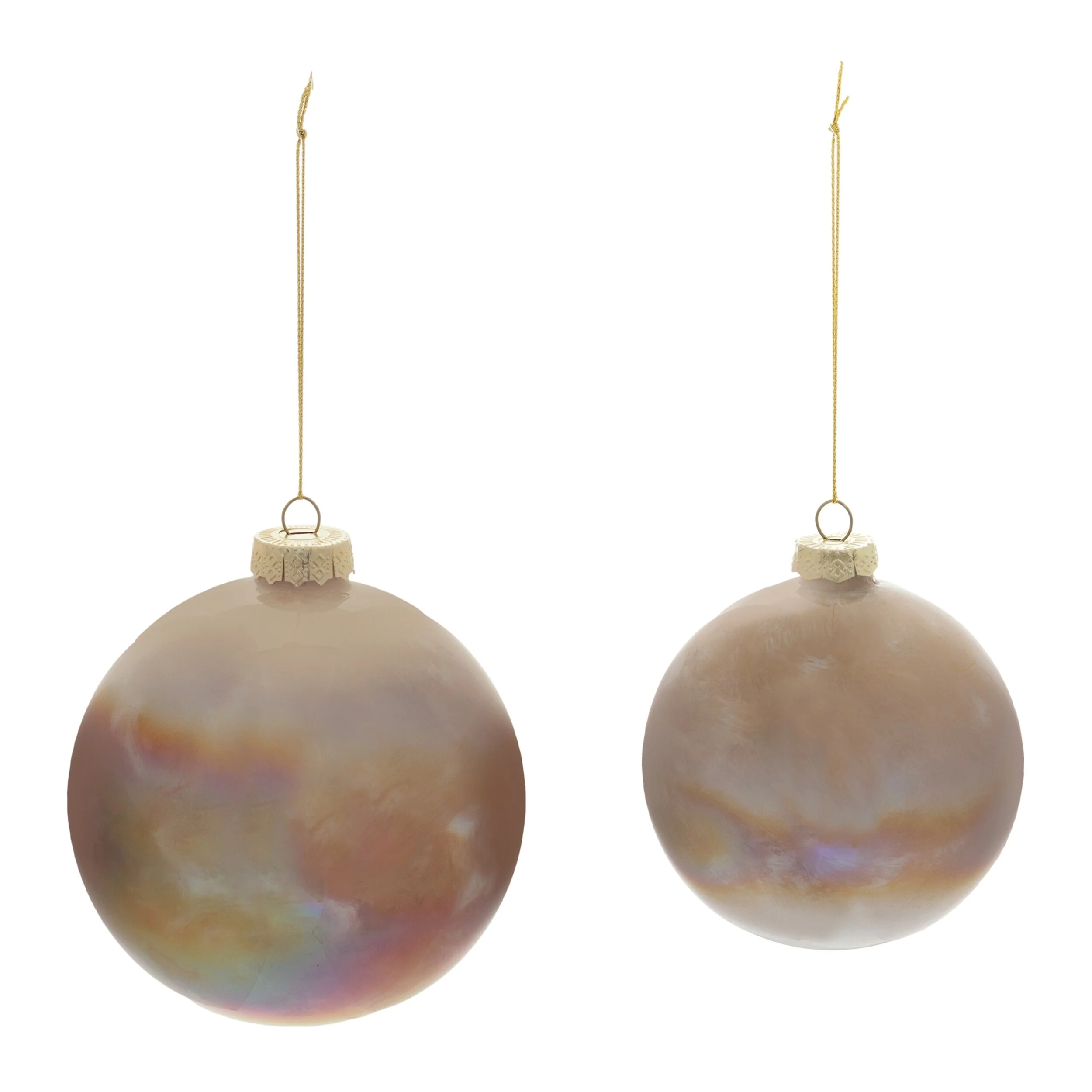 Brown Glass Iridescent Frosted Ball Ornaments Set of 4 with Gold Hangers - 4.5” x 4.5” x 4.5” (L x W x H)