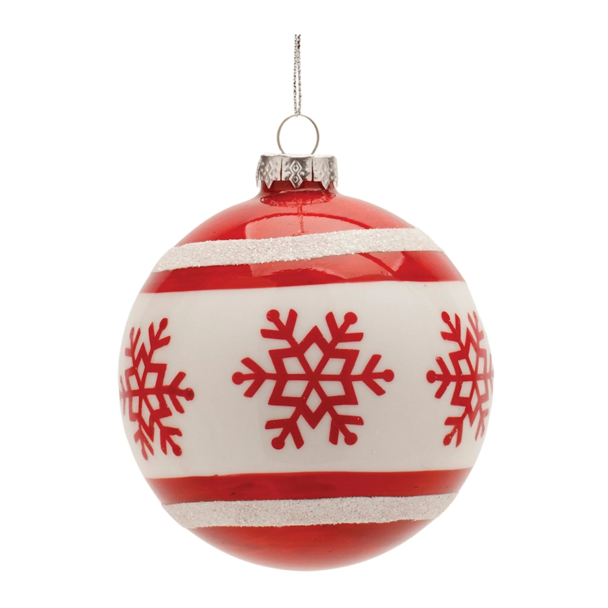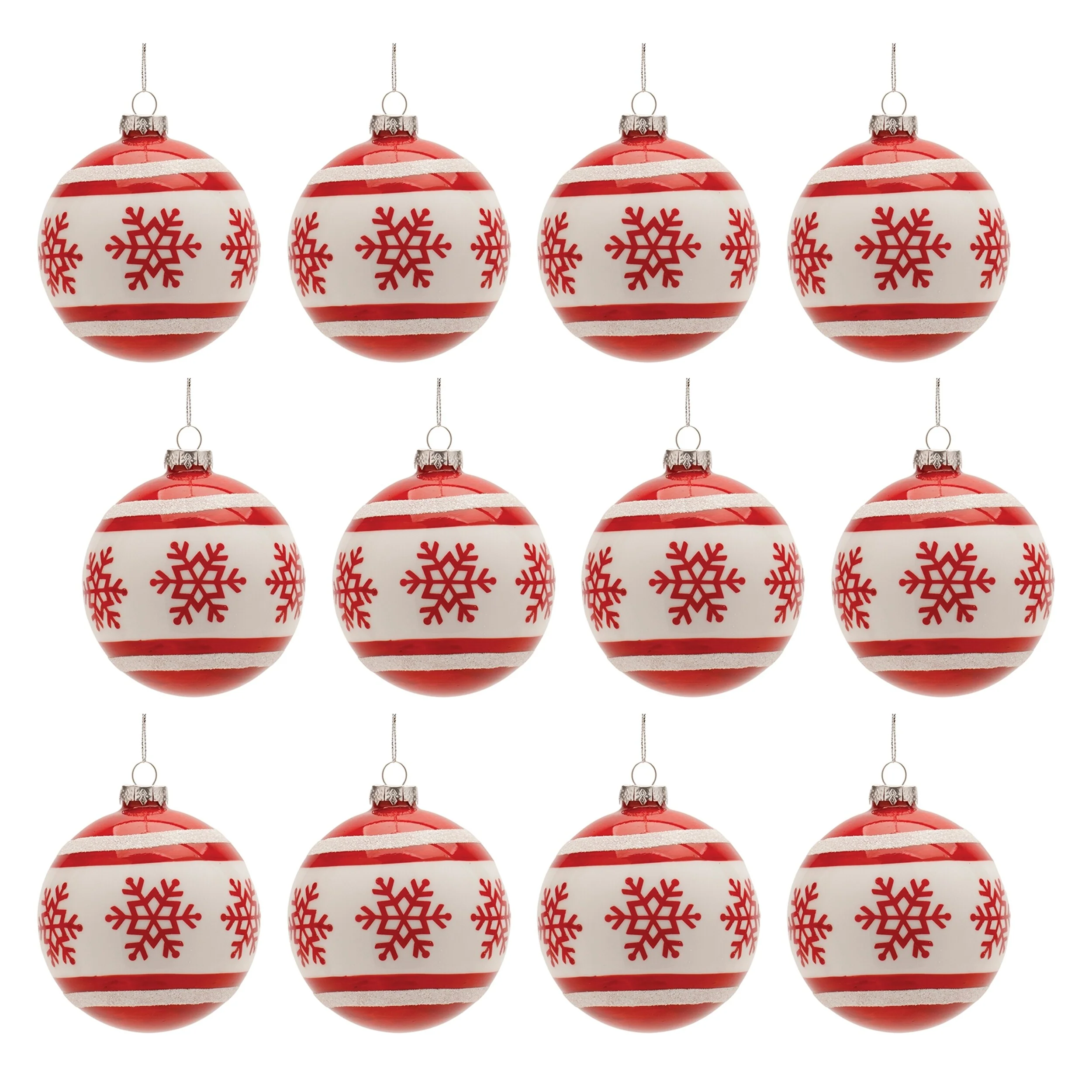 Set of 12 Glass Ornaments for Christmas Tree Red and White - 4" x 4" x 5"