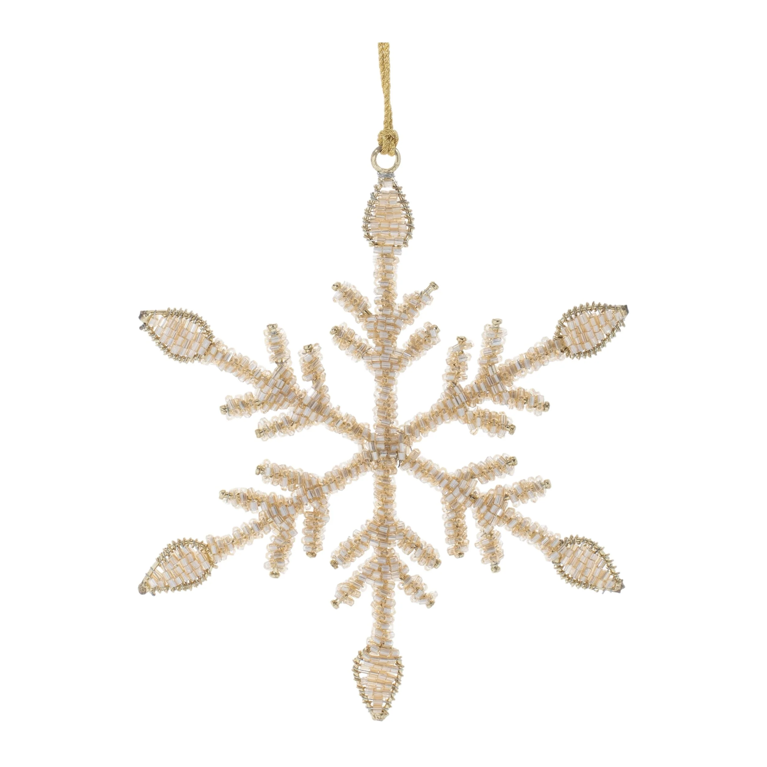 Snowflake Tree Ornaments Set of 12 Gold Iron with Glass Detail - 5” x 0.02” x 6”