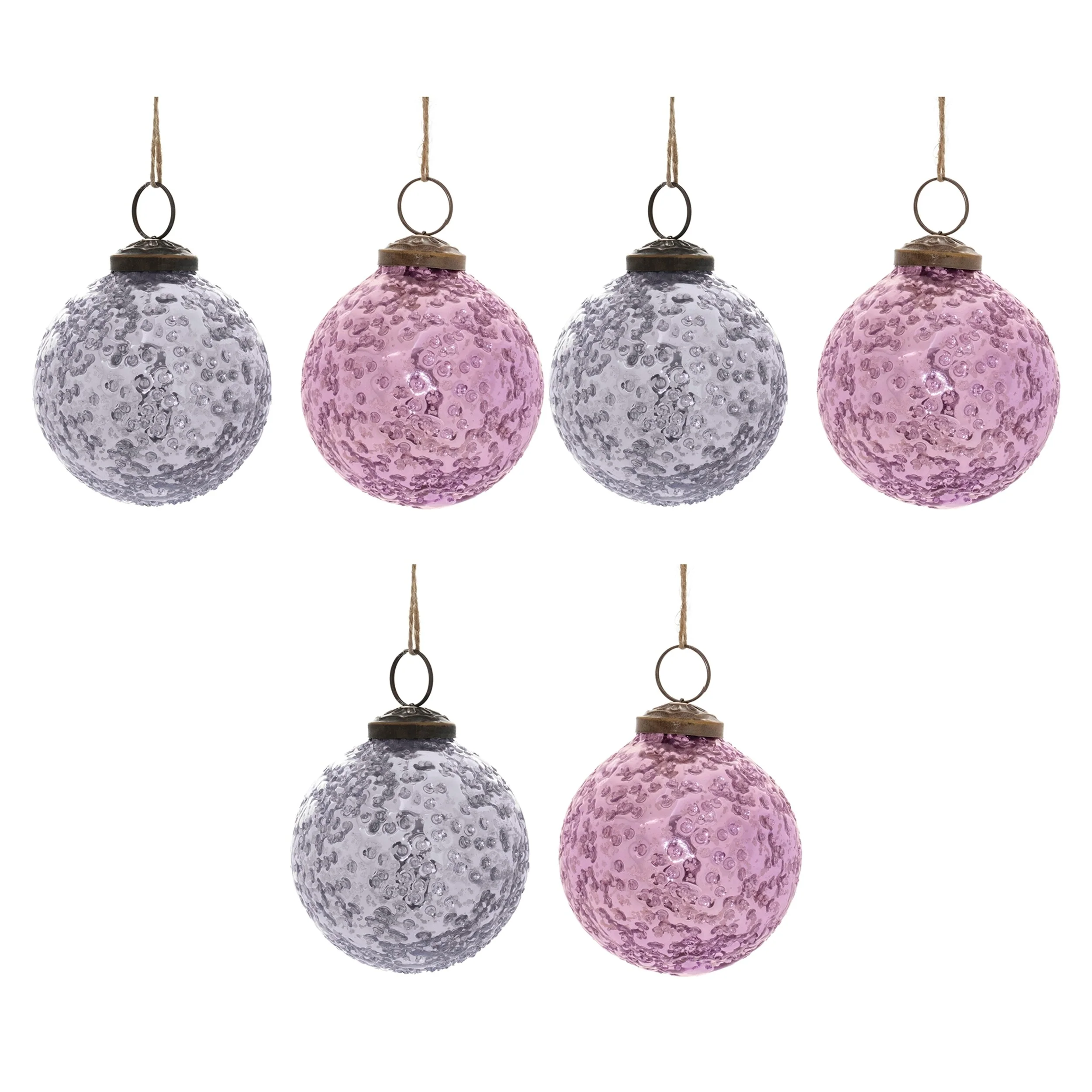 Set of 6 Purple Glass Ball Ornaments for Christmas Tree Decor - 3" x 3" x 4"
