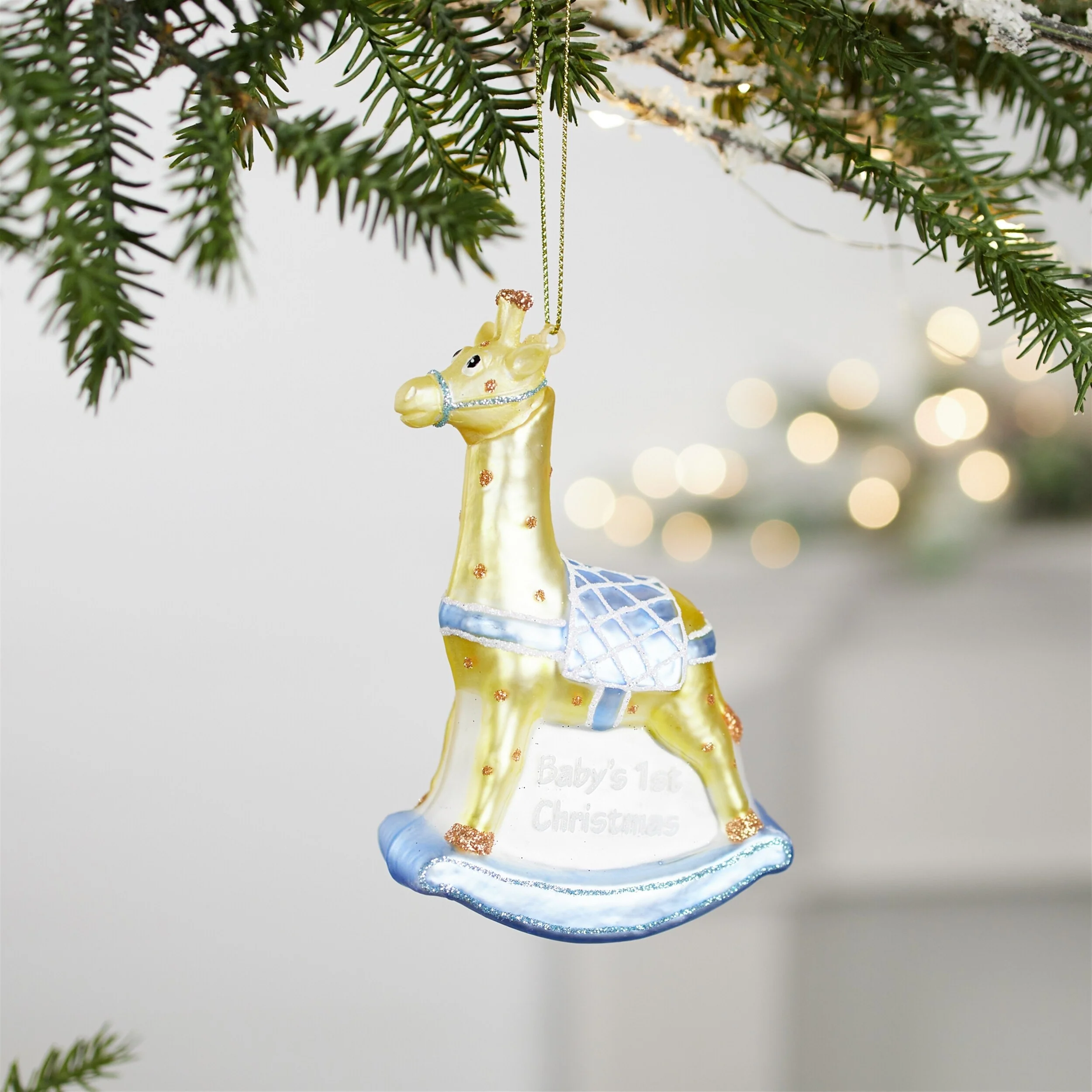 Set of 12 Baby’s 1st Christmas Giraffe Ornaments Glass Rocking Horse Keepsakes Tree Decorations - 3.25”L x 1.5”W x 4.75”H