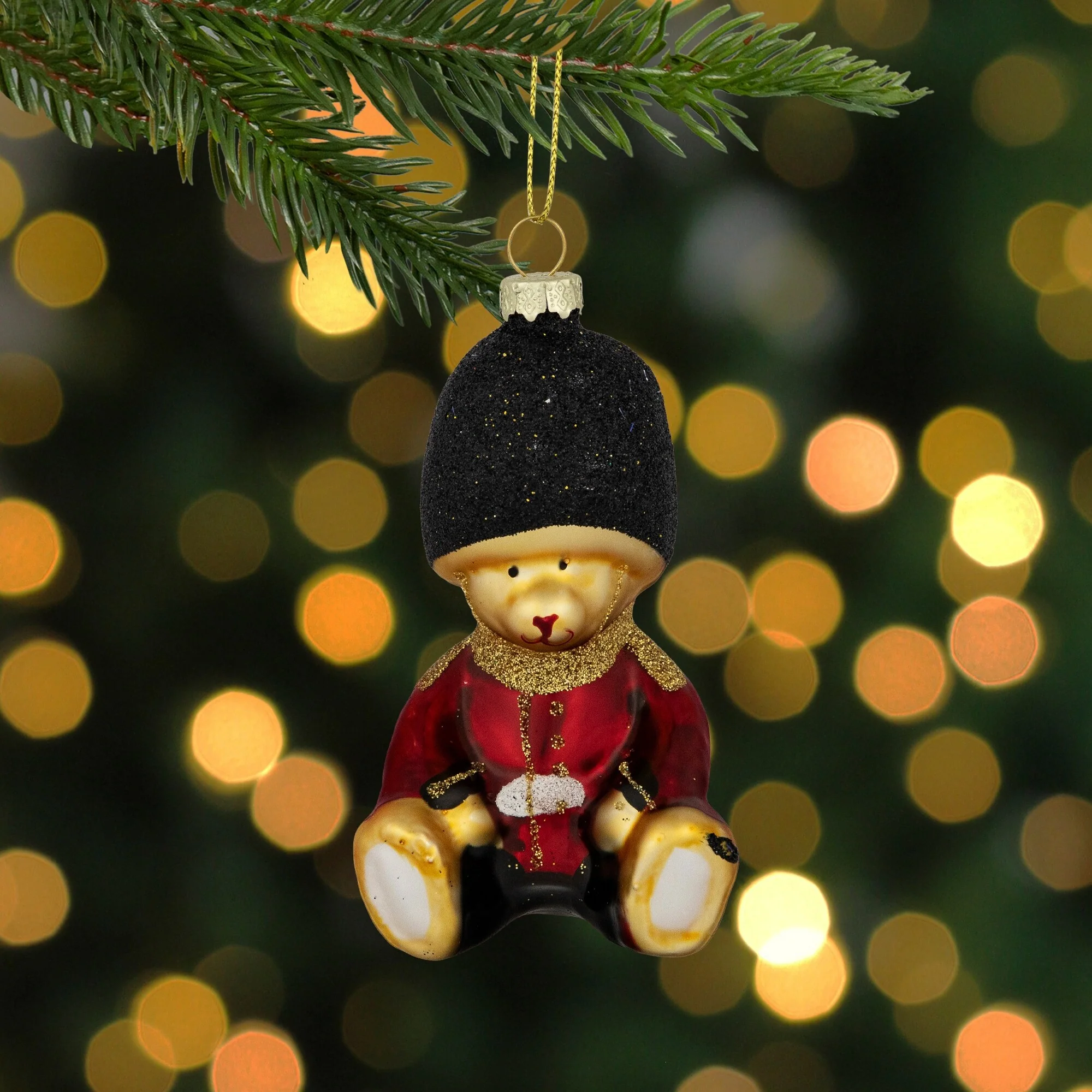 Glittered Teddy Bear Soldier Glass Christmas Hanging Ornament - 4" - Red and Black