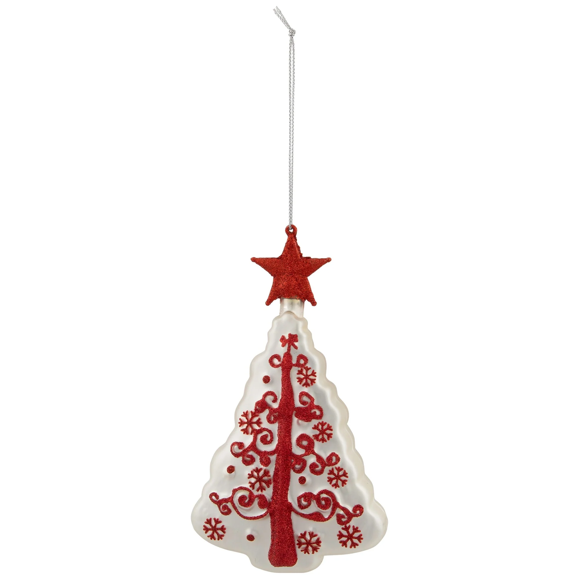 6" White and Red Christmas Tree Glass Ornament