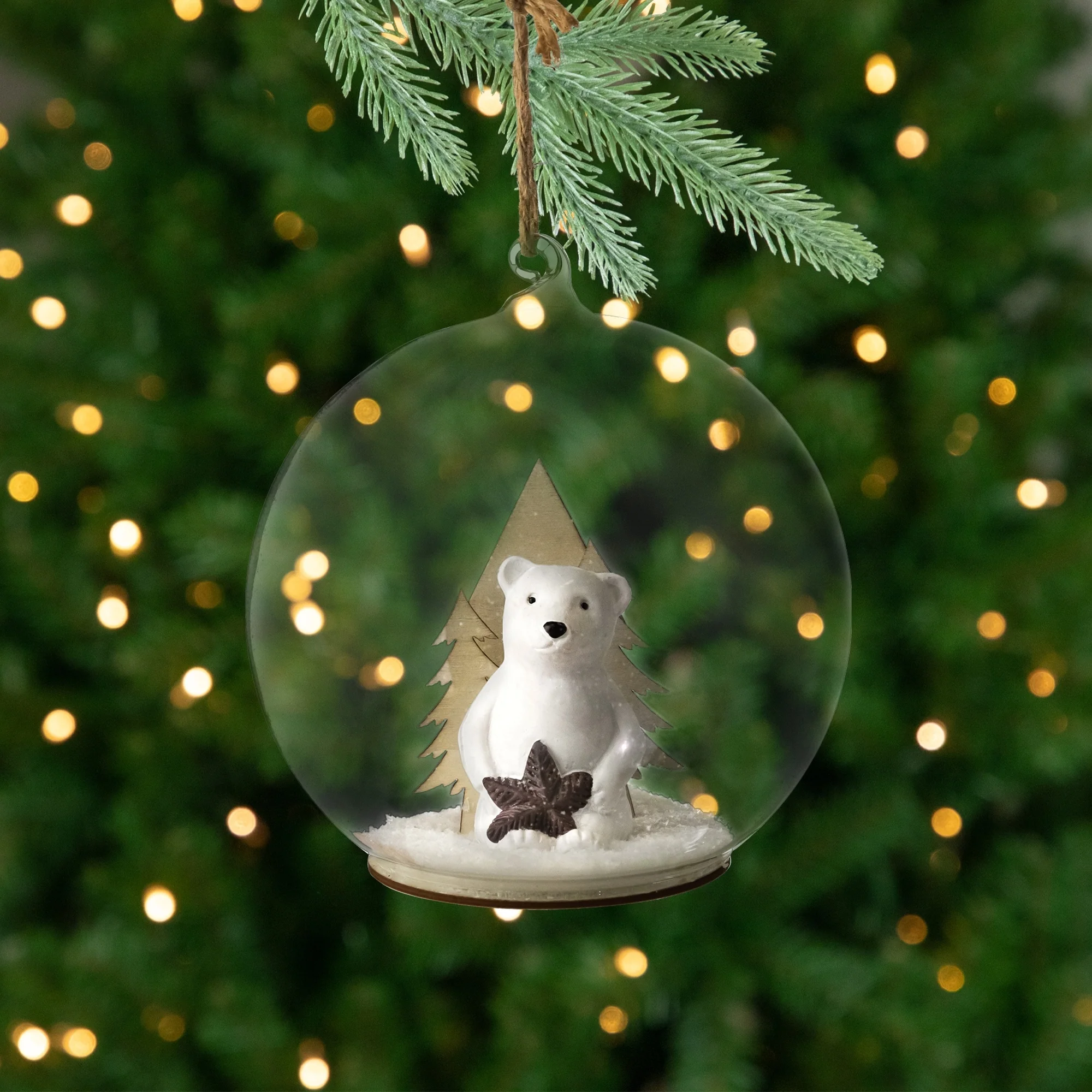 Polar Bear in Snow Glass Globe Christmas Ornament - 4.75"