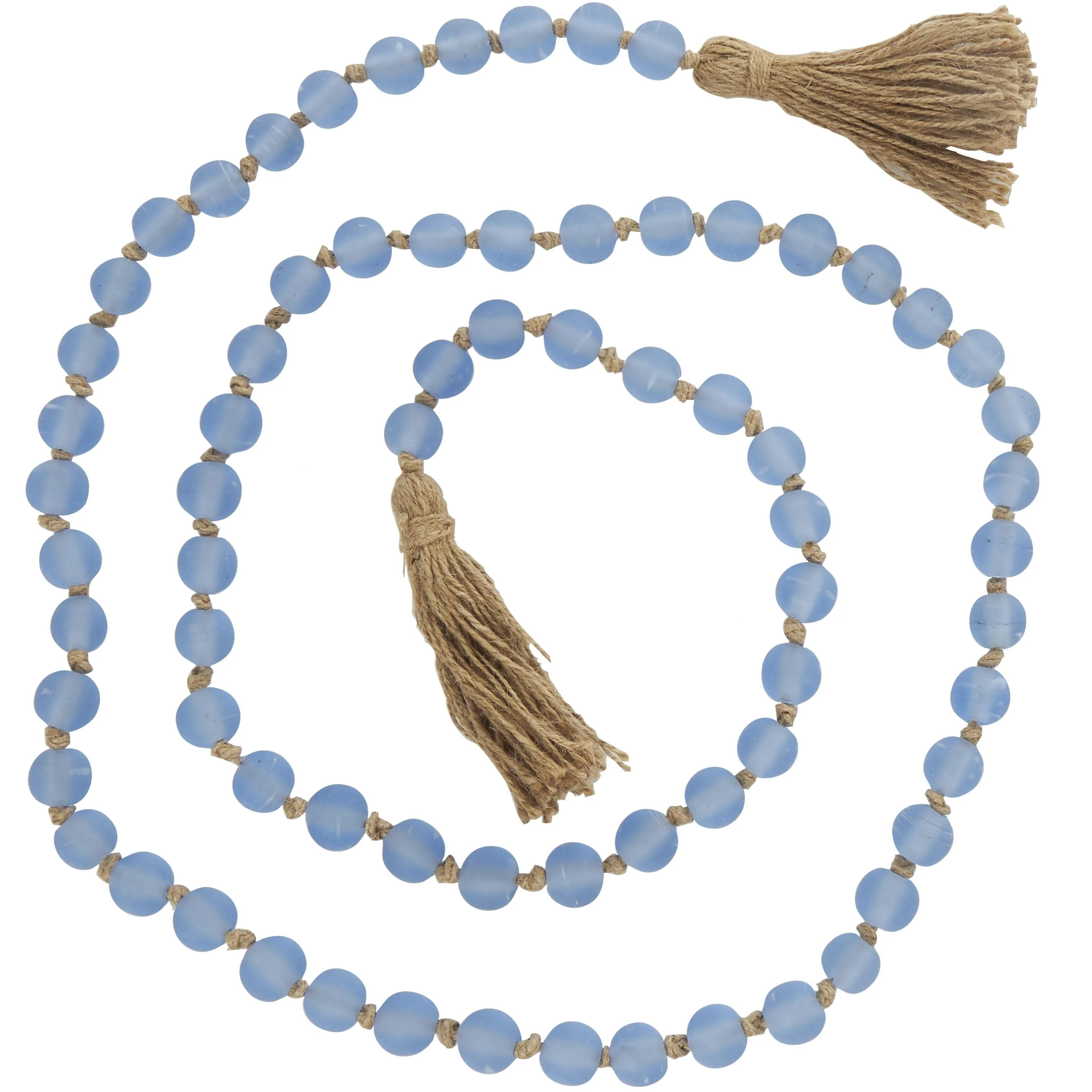 Glass Handmade Round Long Frosted Beaded Garland with Tassel with Knotted Brown Jute - Various Colors - Roche River Decor