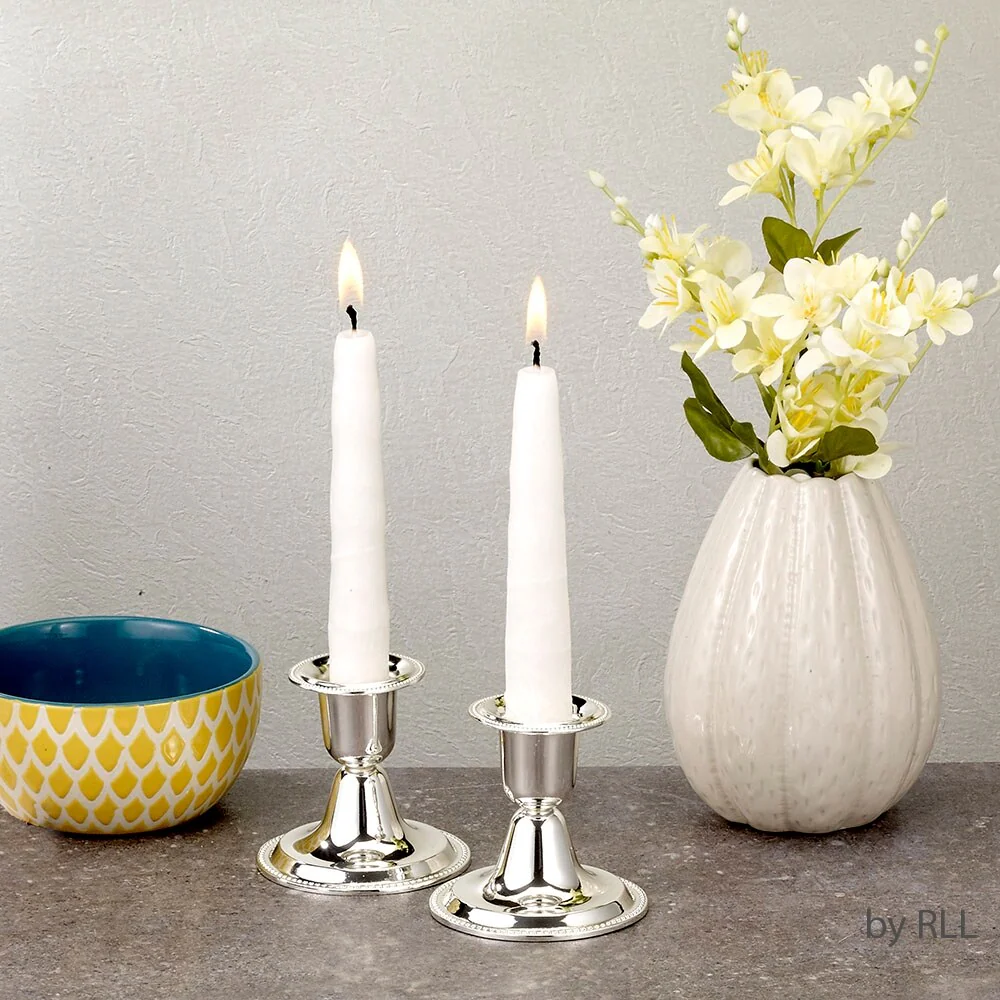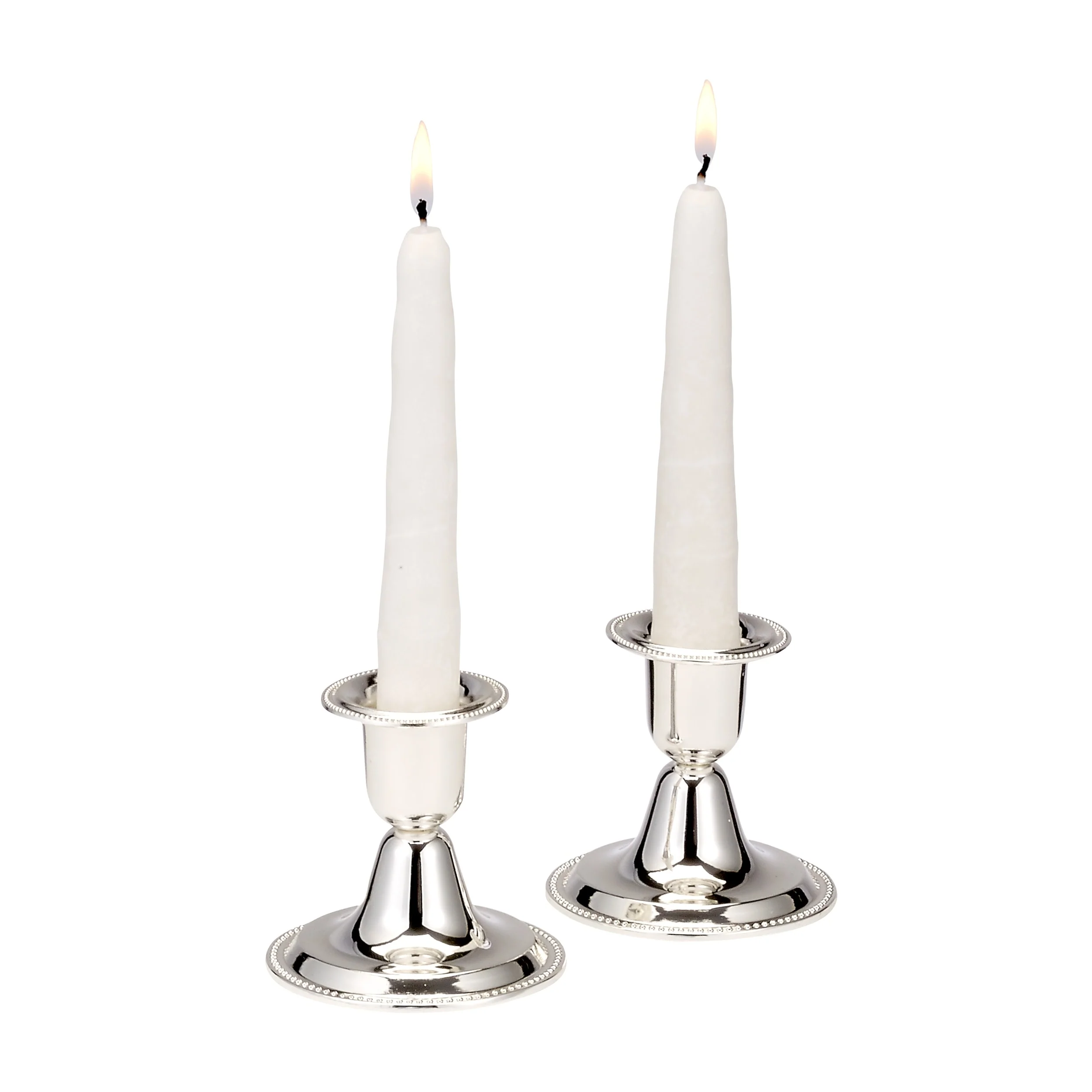 2-Piece Silver Plated Small Traditional Sabbath Candle Stick Holders