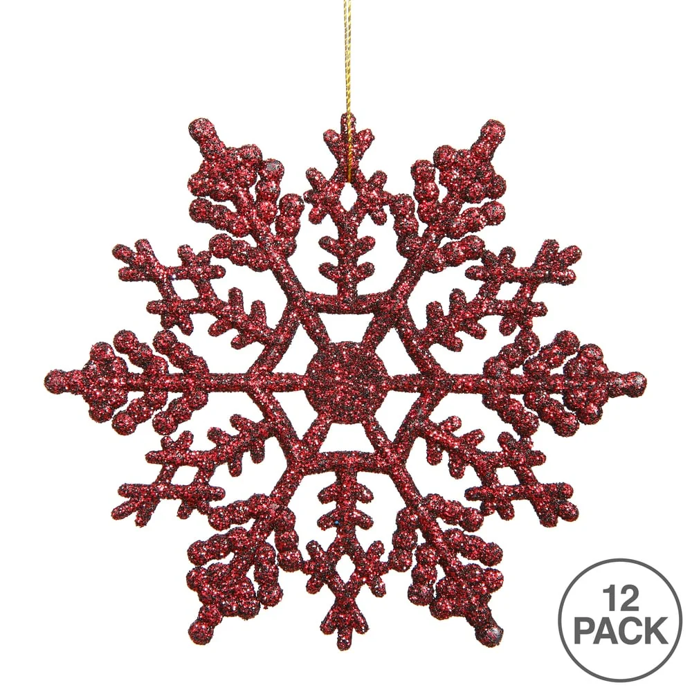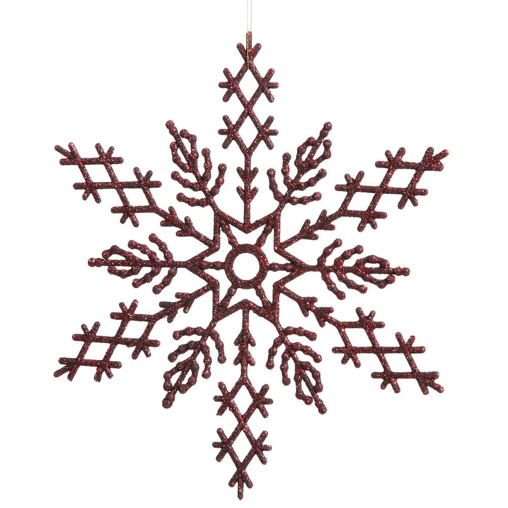 Vickerman 8" Burgundy Glitter Snowflake Christmas Ornament, 12 per Box - Red