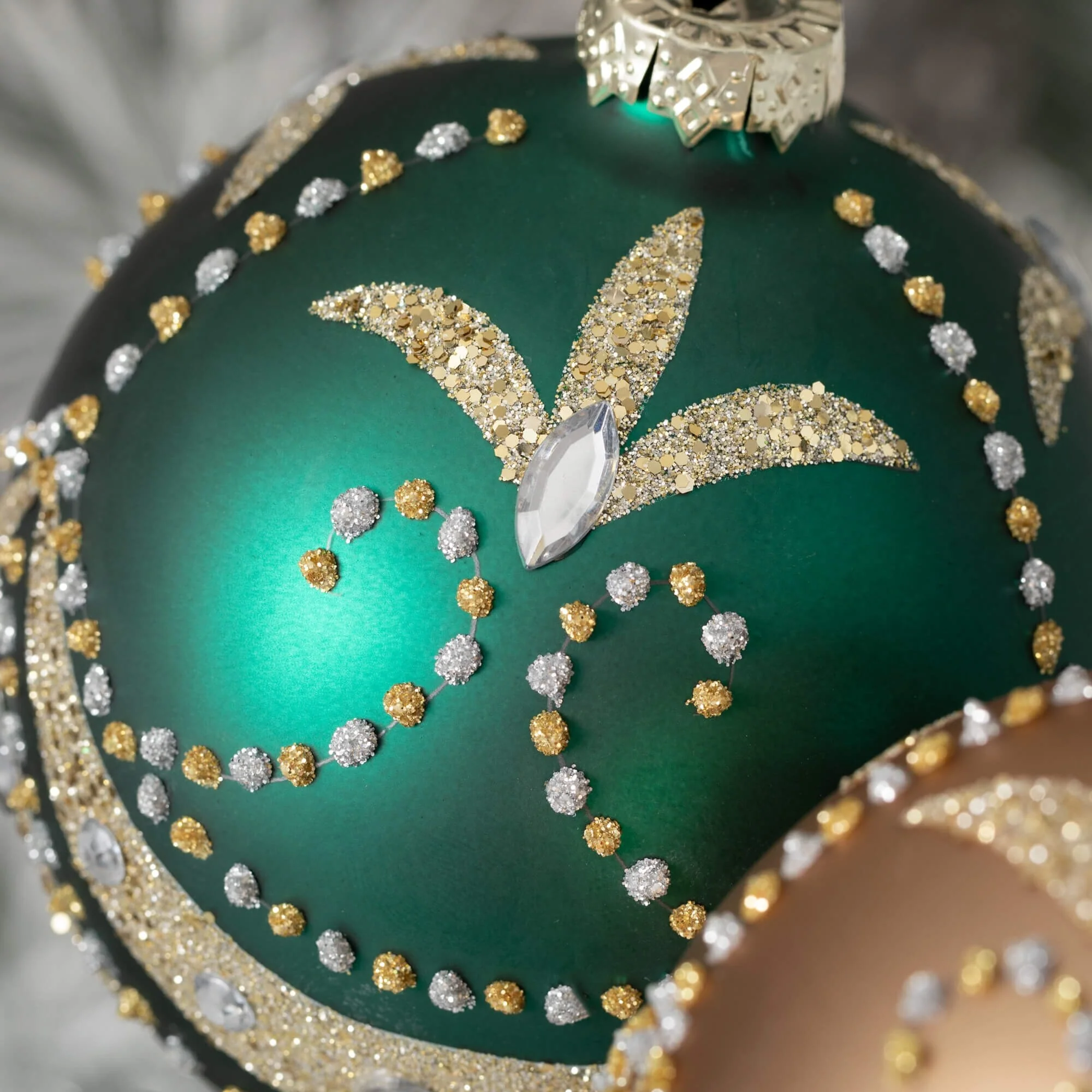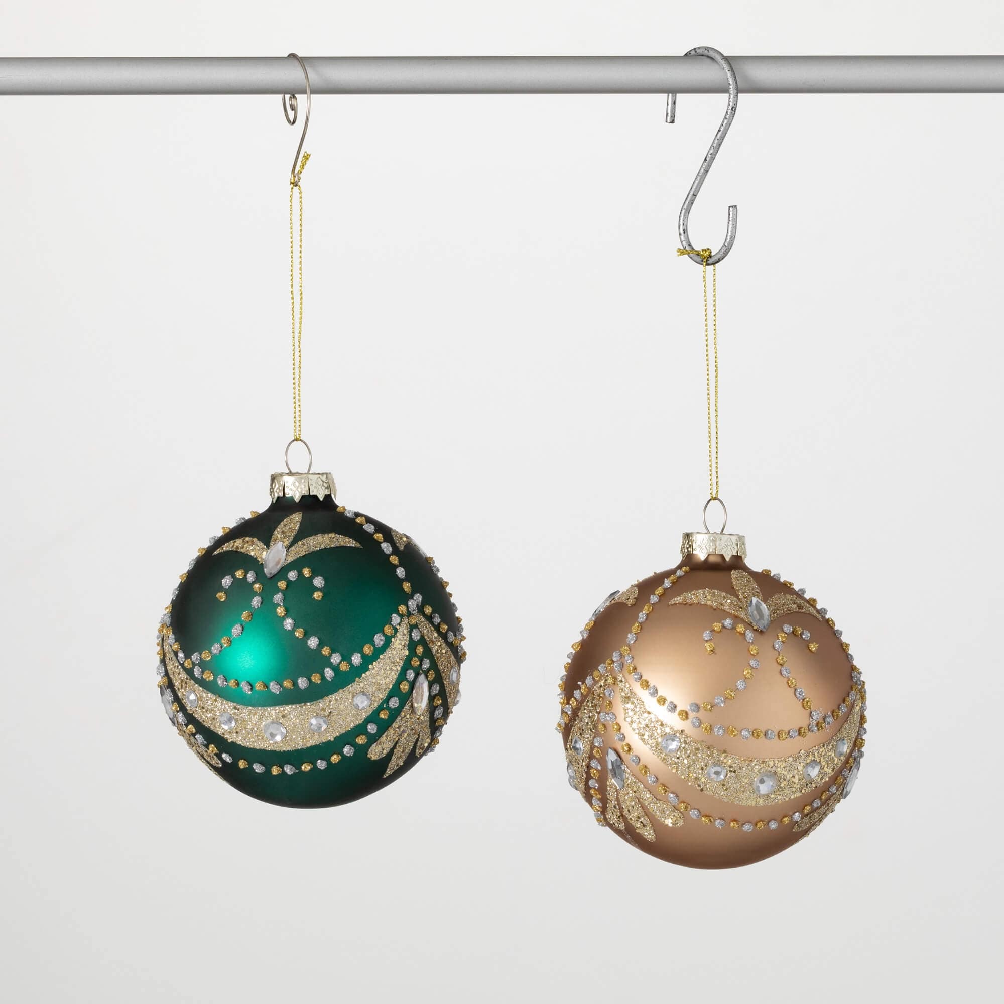4"H Sullivans Christmas Green Gold Ball Ornament Set of 2, Green-Gold
