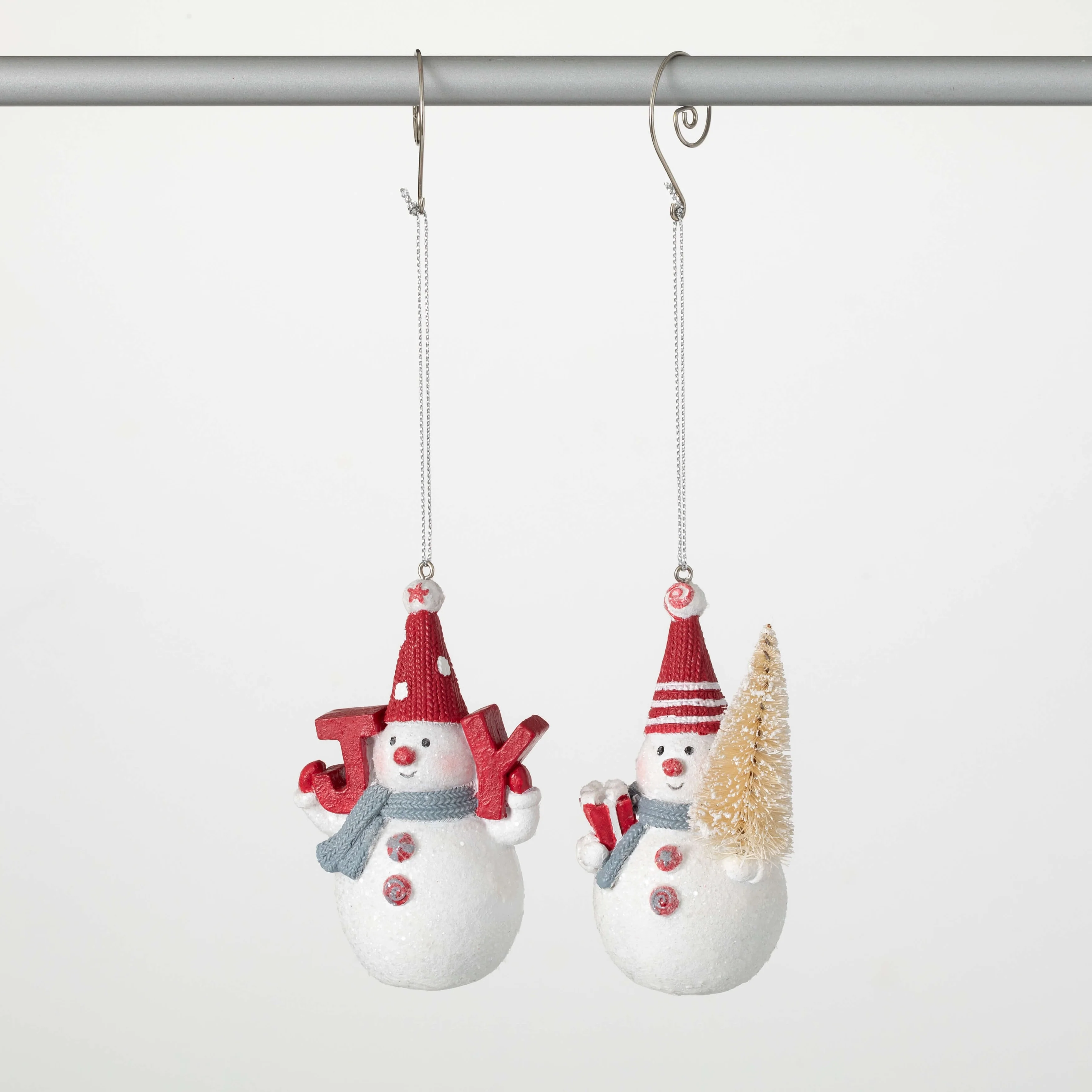 4.25"H & 4.25"H Sullivans Christmas Whimsical Snowman Ornament Set of 2, Multicolor