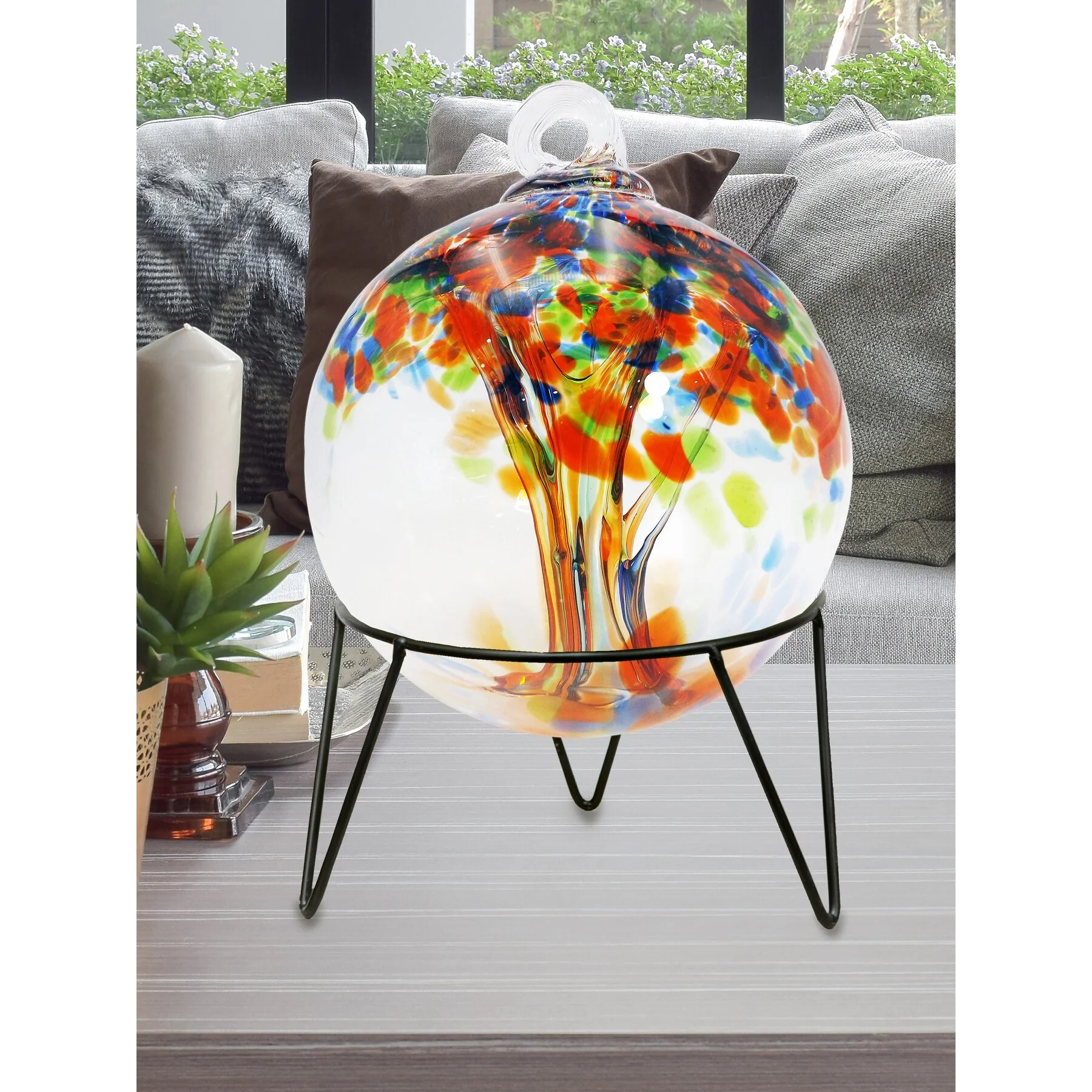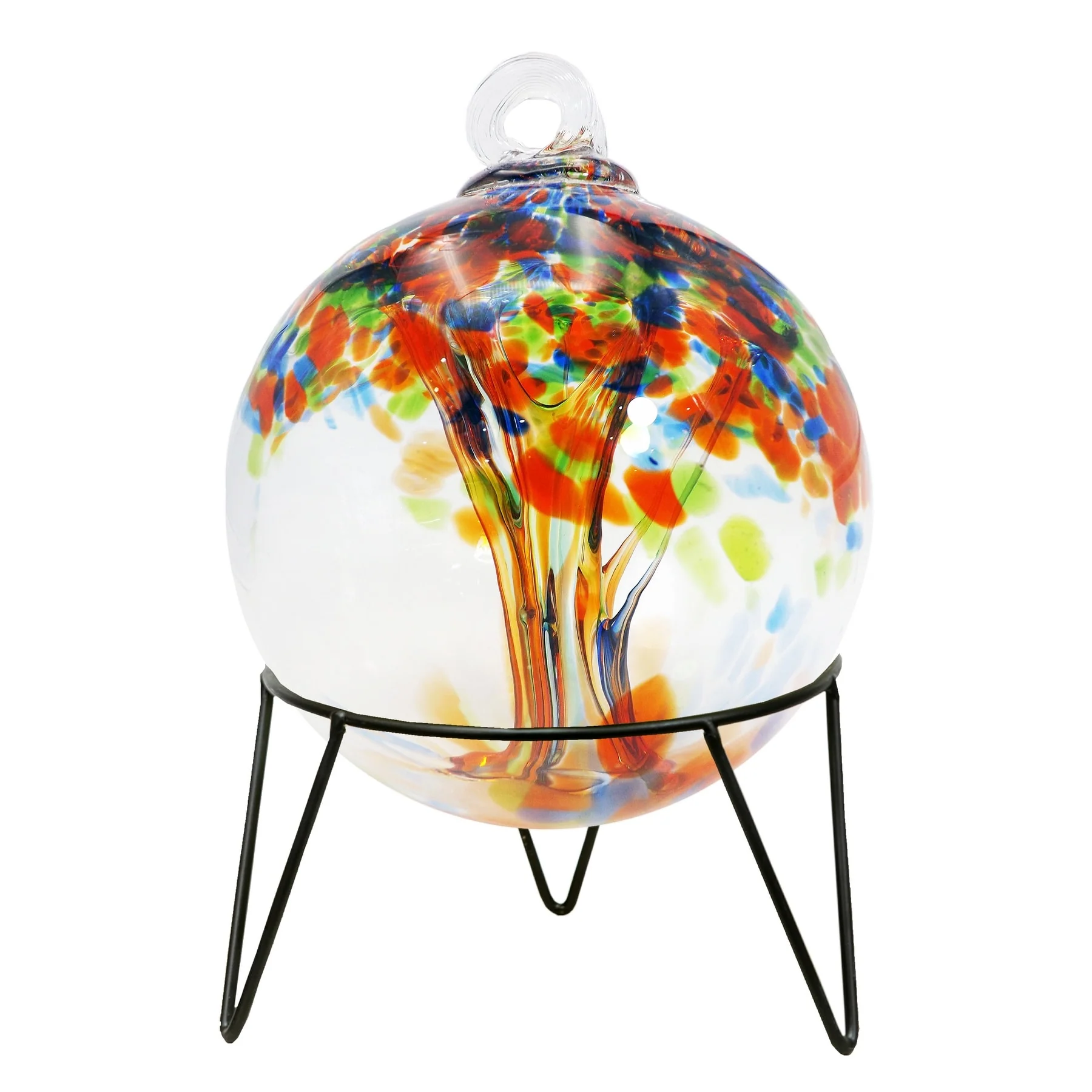 Tree Of Life 8In Royal Hand Blown Glass Ball With Stand