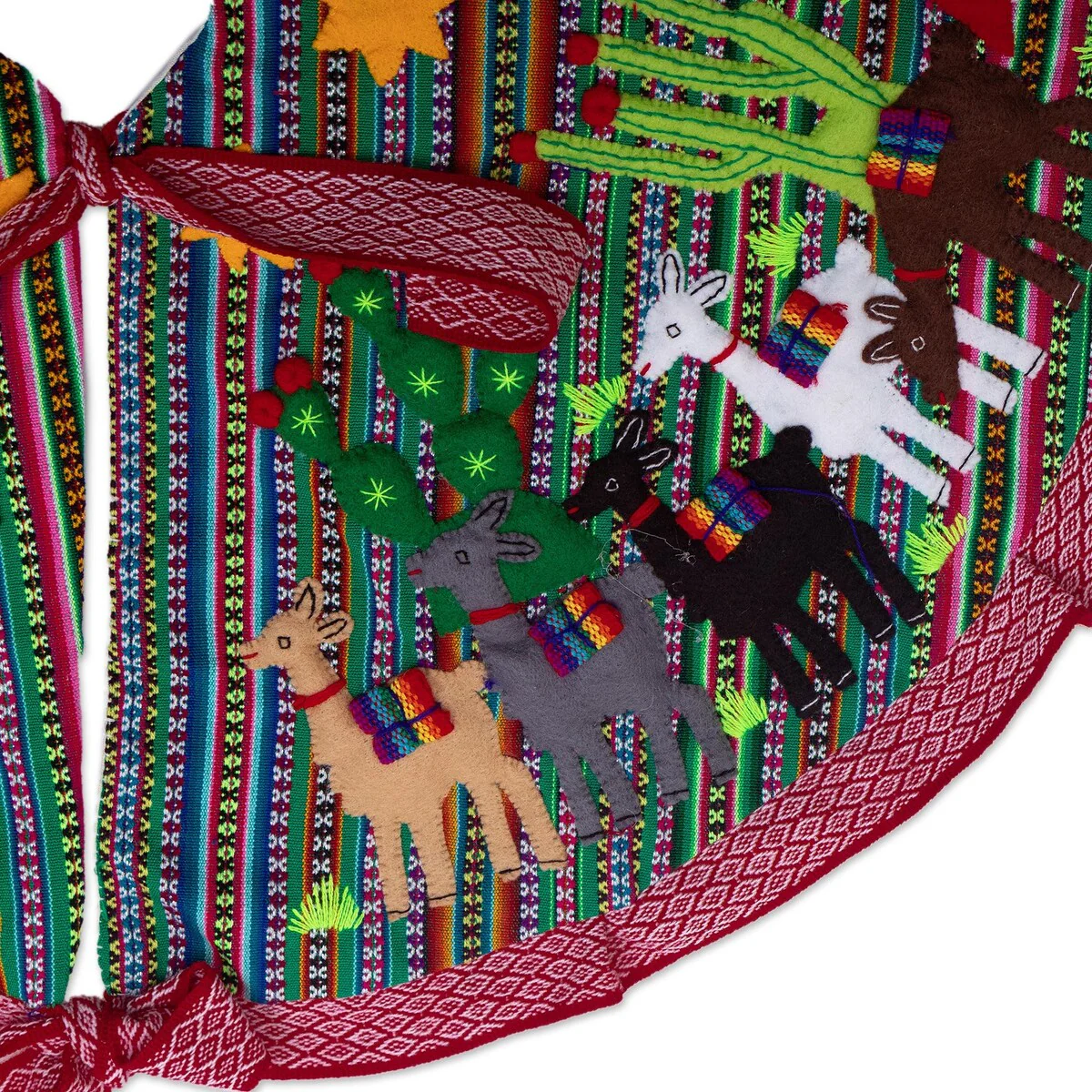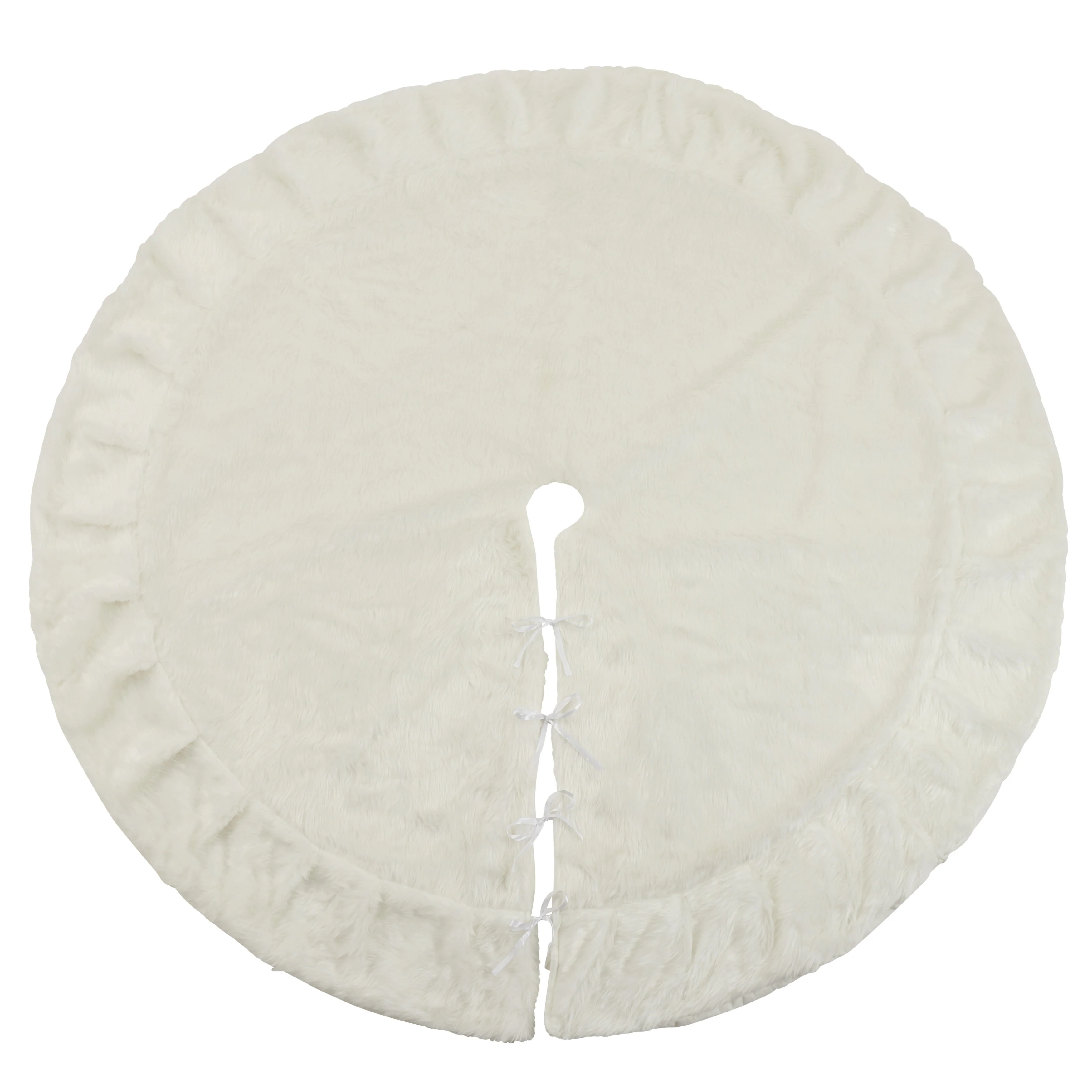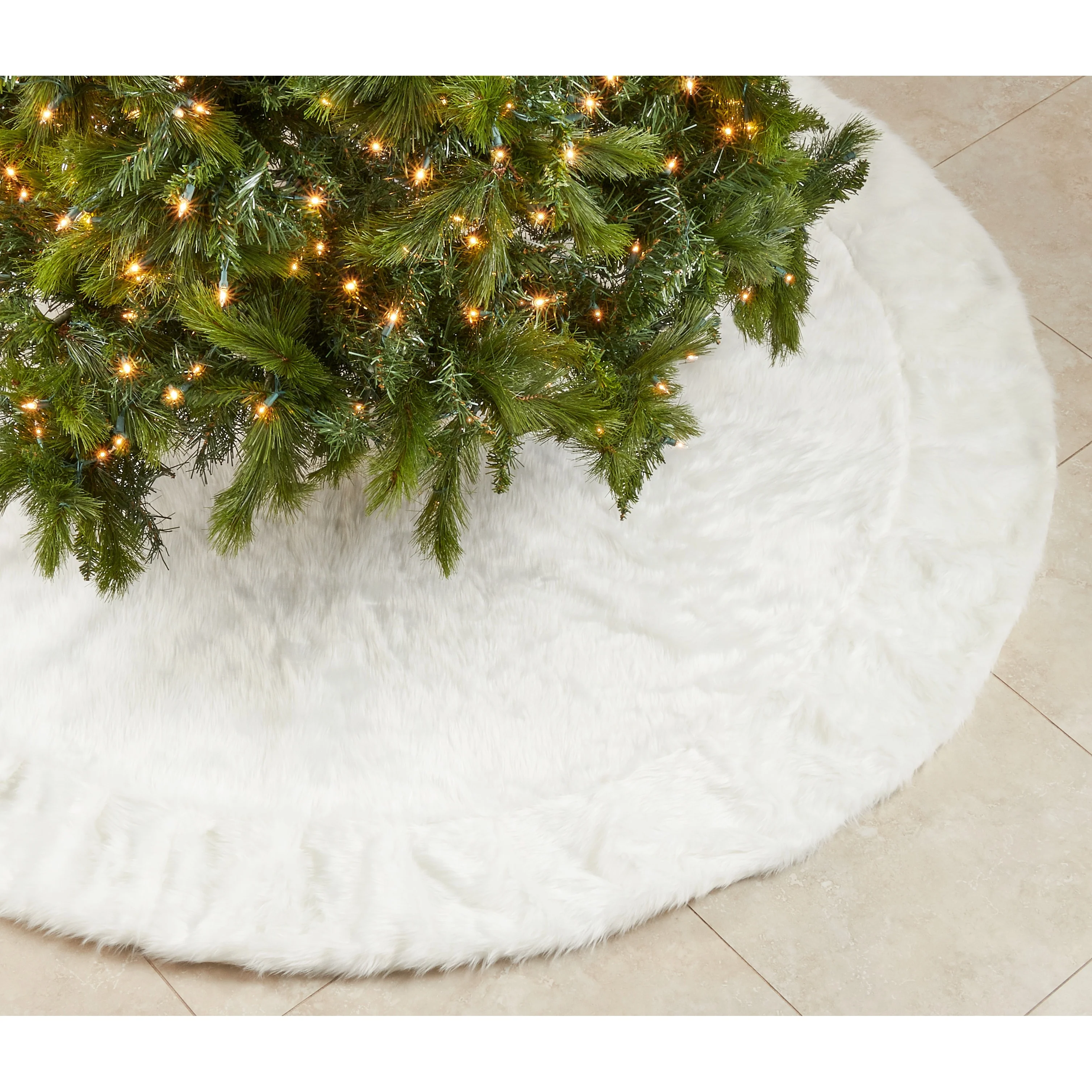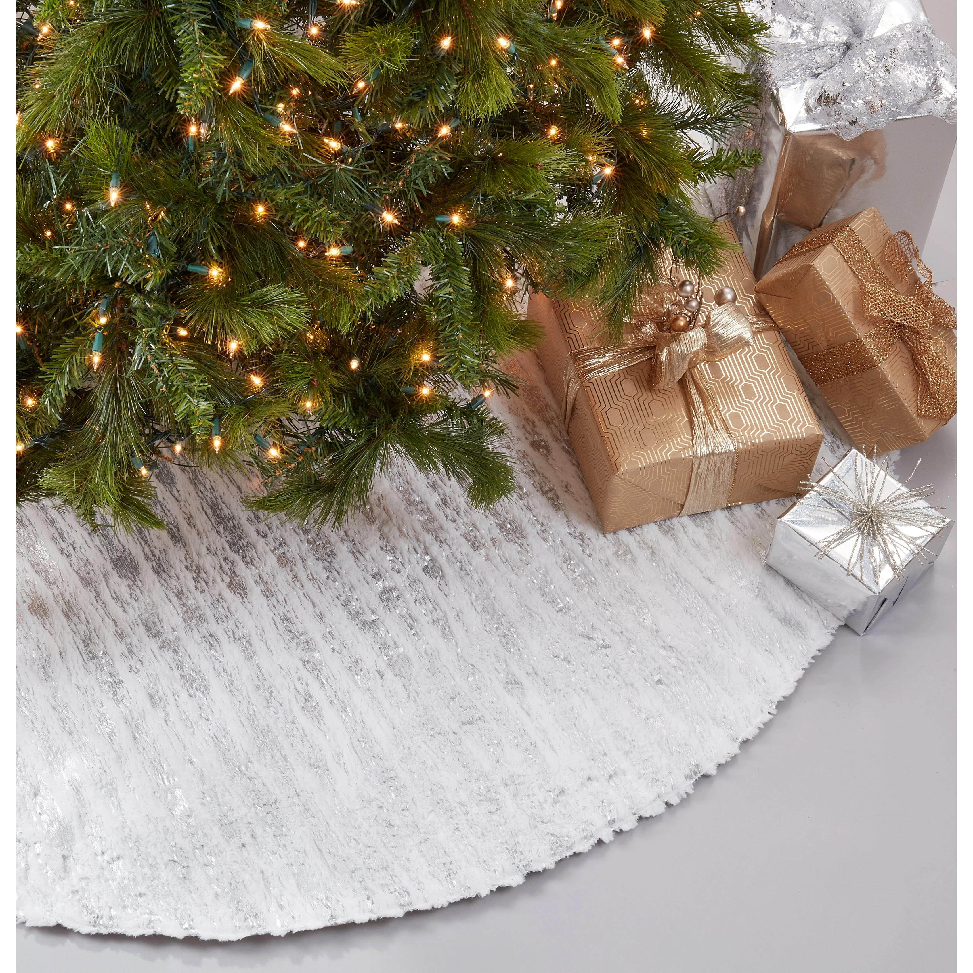 Christmas Tree Skirt With Foil Print Faux Fur Design