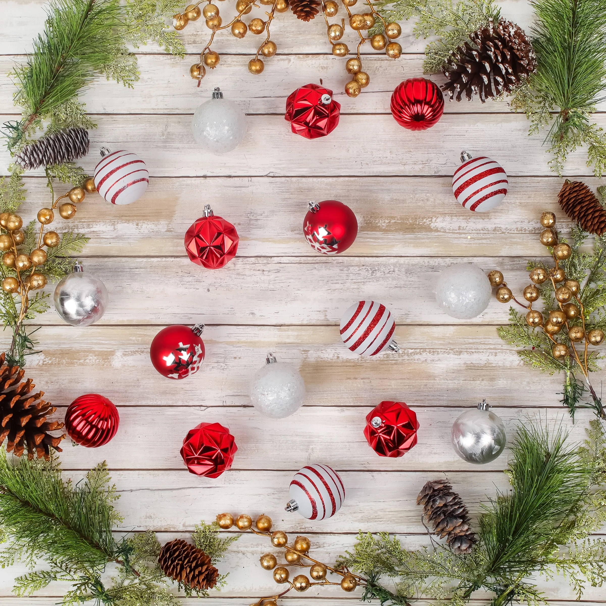 National Tree Company 2 in. Christmas Ball Ornaments, Red, White and Silver, Set of 96 - 2 in