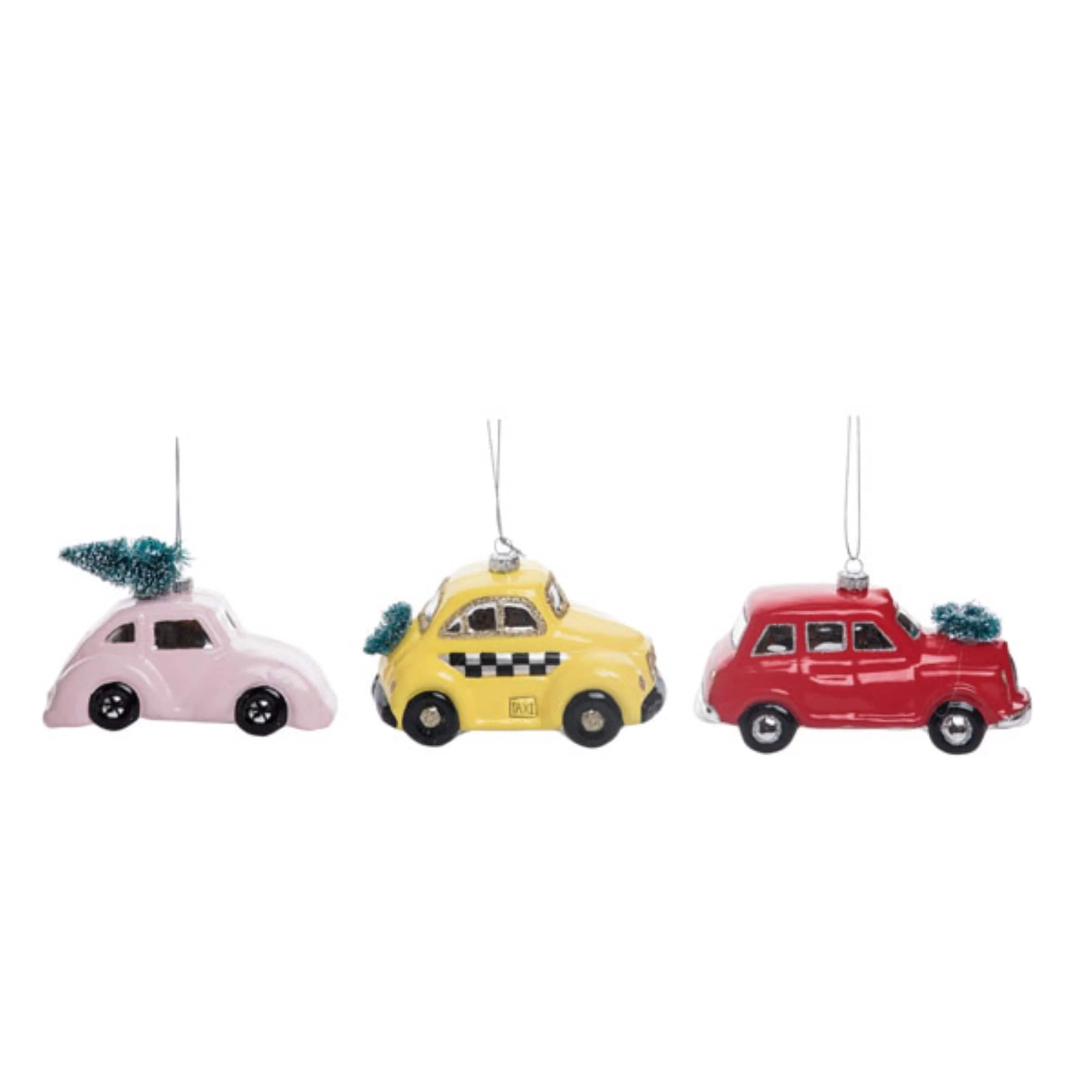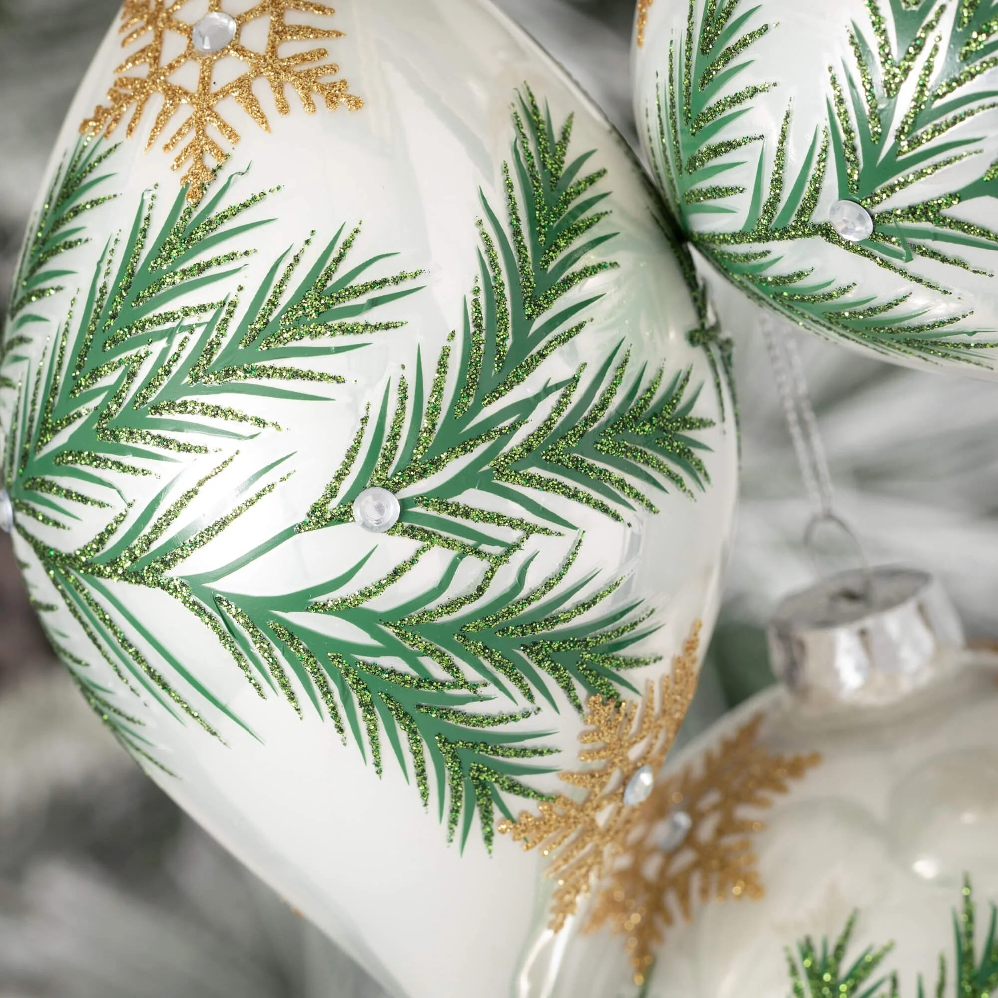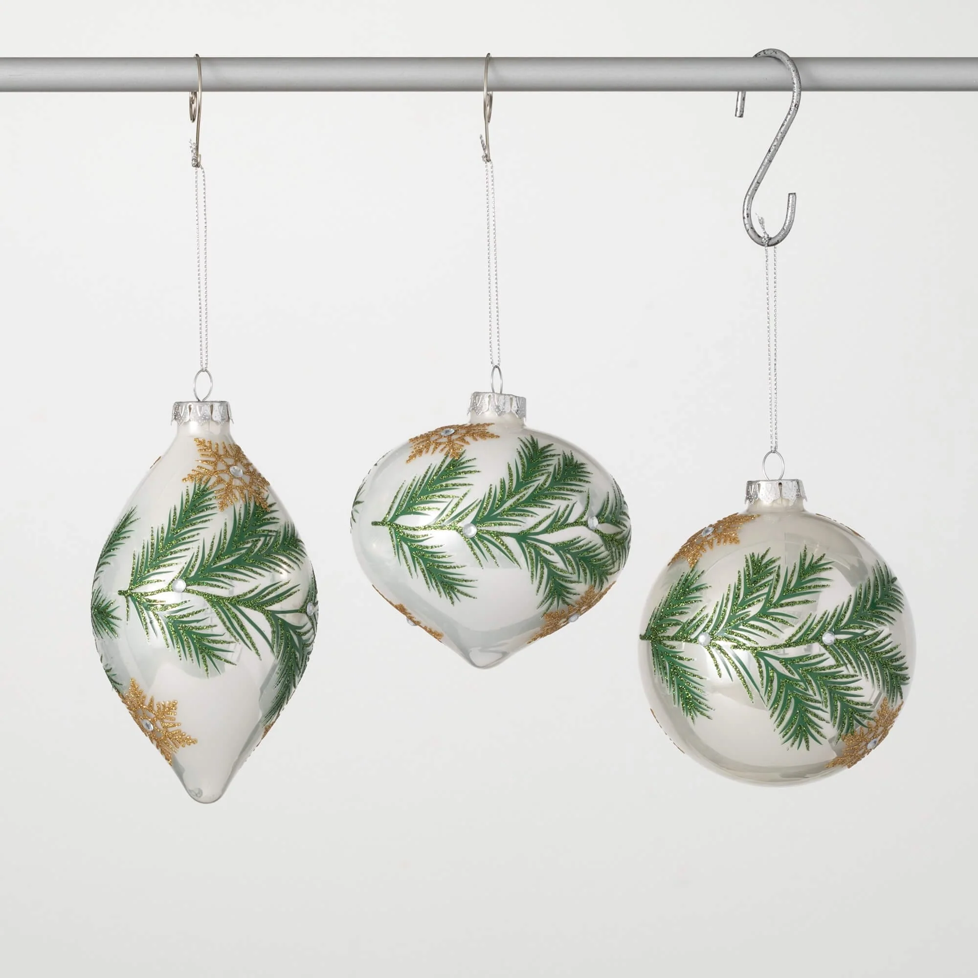 5.5"H & 4"H Sullivans Christmas Fresh Woodland Ornament Set of 3, White-Green