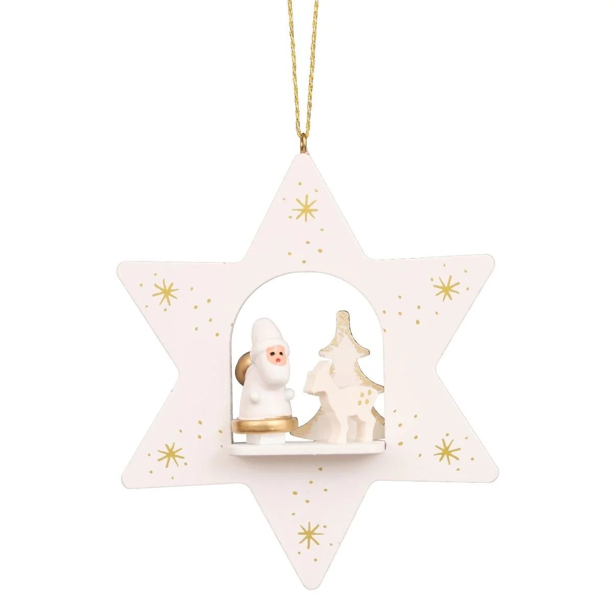 4" Gold White Star With Santa Collectible Christian Ulbricht Ornament