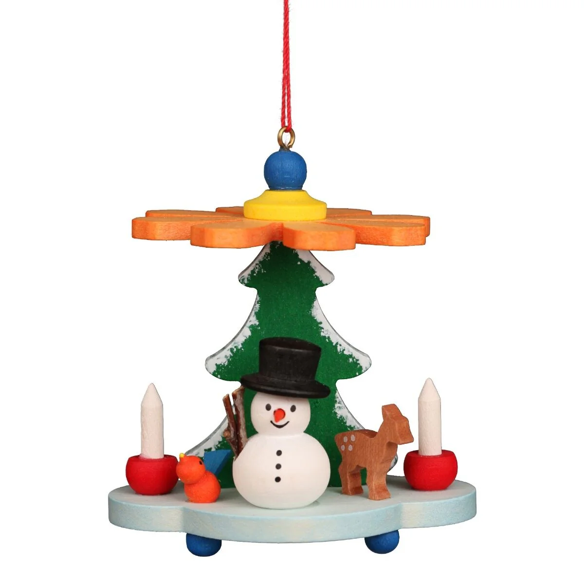 3" Warm and Vibrant Pyramid With A Snowman Collectible Christian Ulbricht Ornament