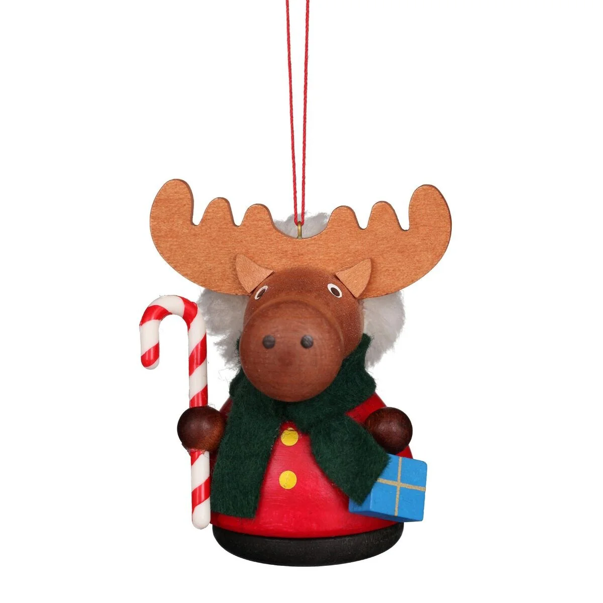 3" Brown Red Christian Ulbricht Moose with Cy Cane Ornament Decoration
