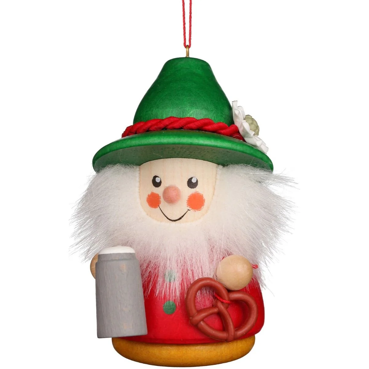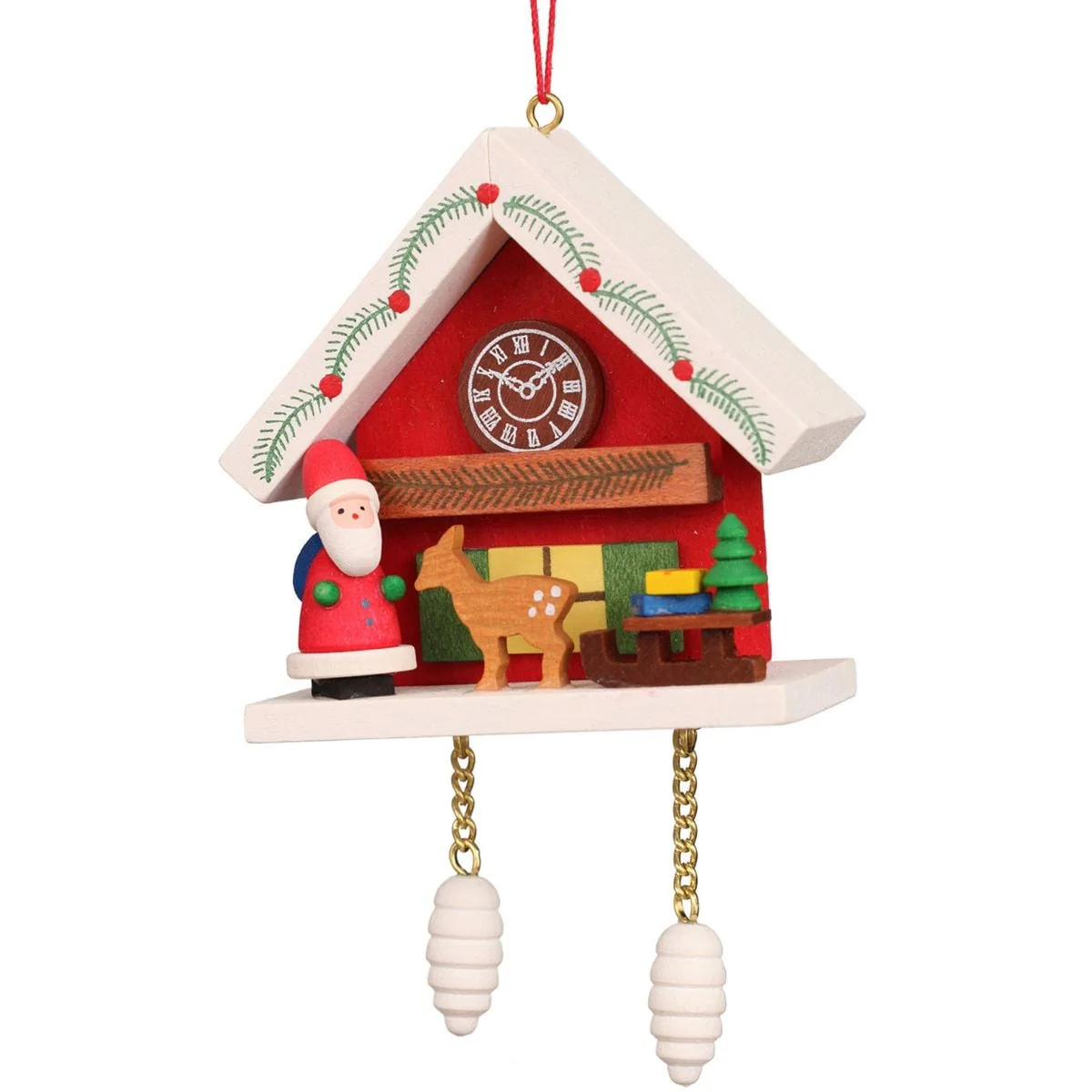 4" Red, White, Brown Santa with Red Cuckoo Christian Ulbricht Ornament