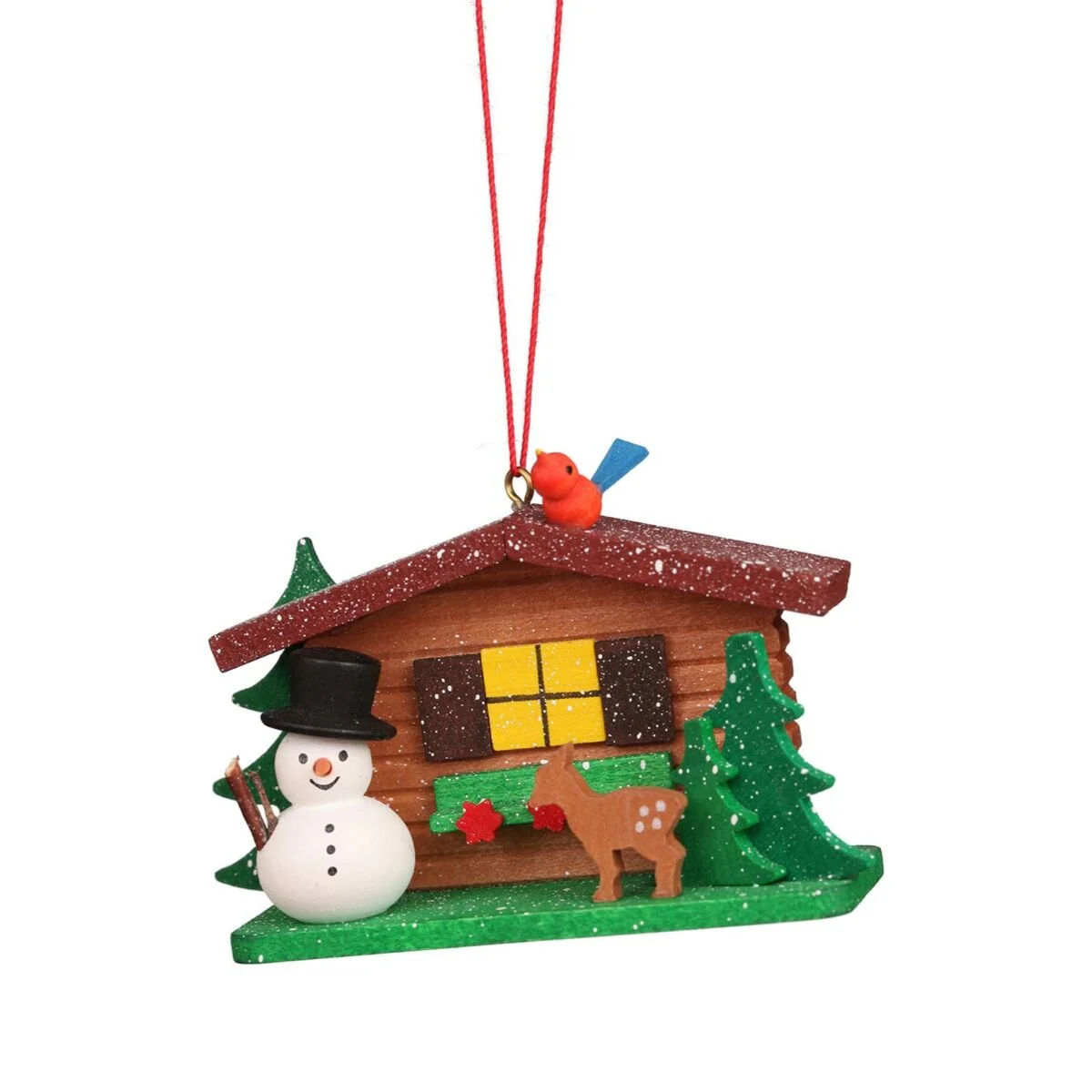 3.25" Green Brown White Cottage a Snowman Christian Ulbricht Ornament