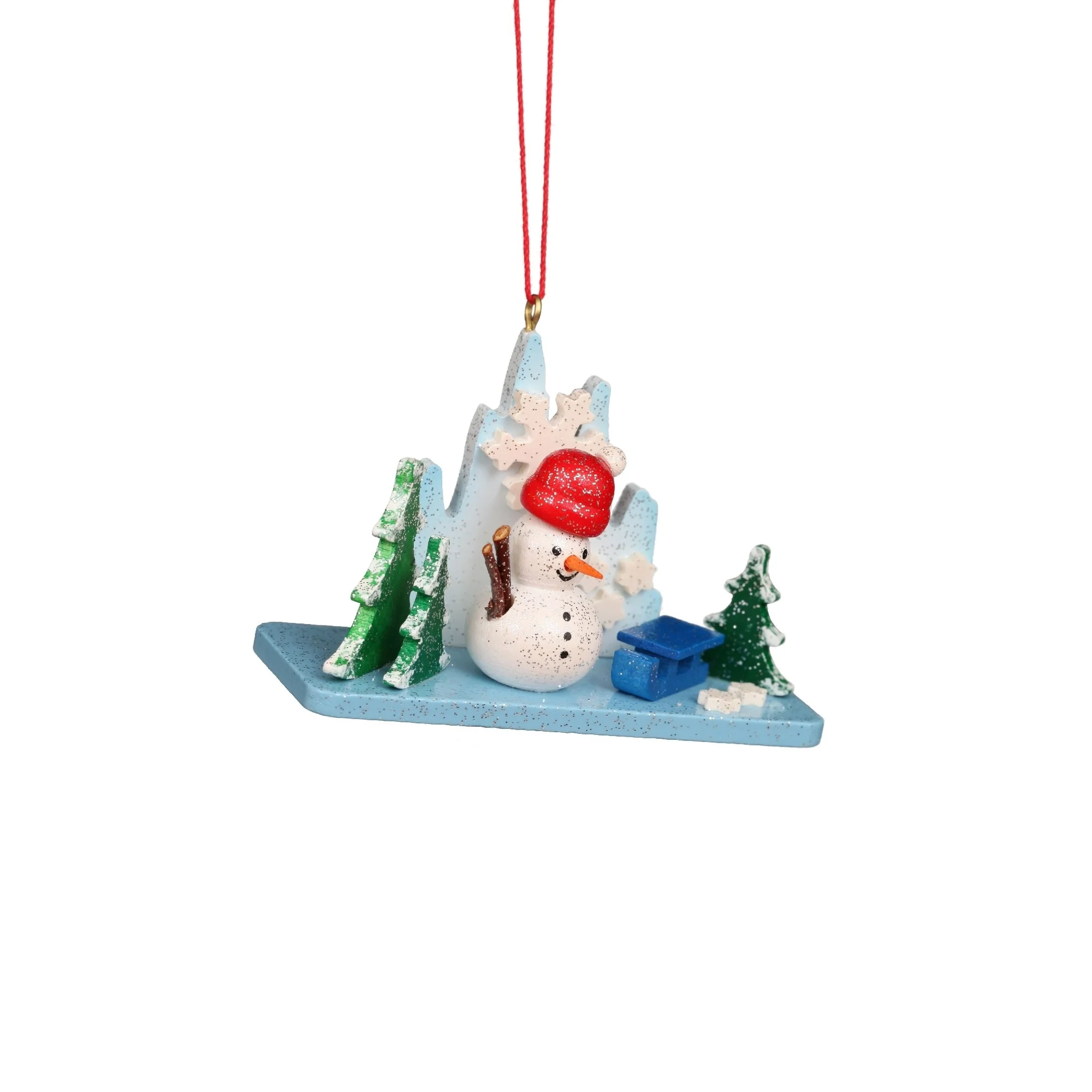 2.75" ice landscape with snowman christmas handcrafted wooden ornament