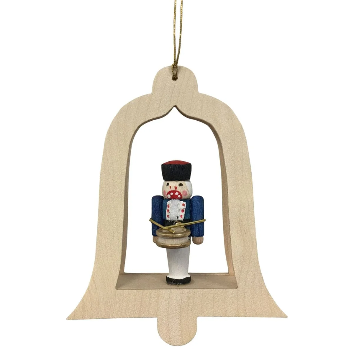 3.25" Beige Blue Red Nutcracker Drummer Bell Richard Glaesser Ornament