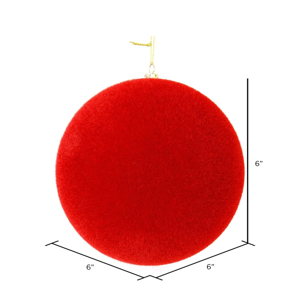 Vickerman 6" Red Flocked Ball Ornament, 4 per bag.