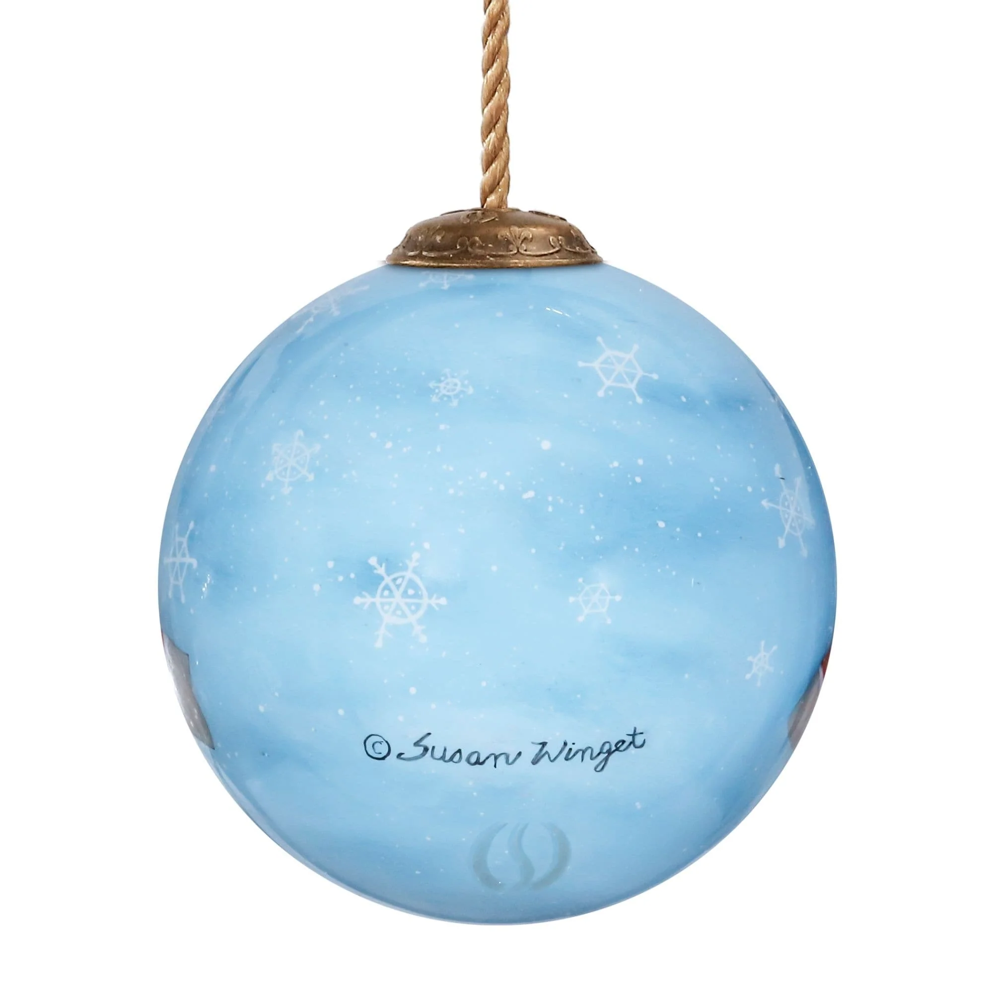 3" Norman Rockwell 'Bringing Home The Tree' Glass Christmas Ornament