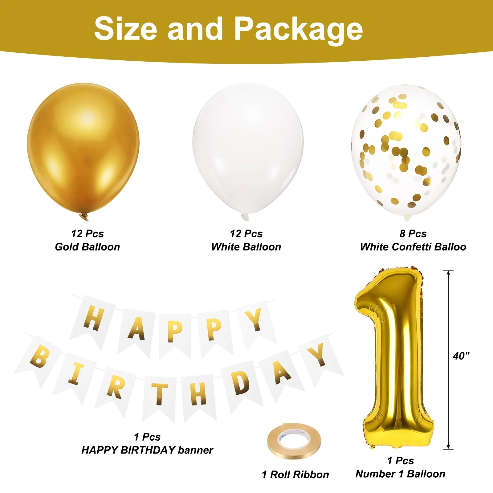 1st Birthday Decorations, 40 Inch Gold Number 1 Balloon for One Year Old Decor - Gold Tone