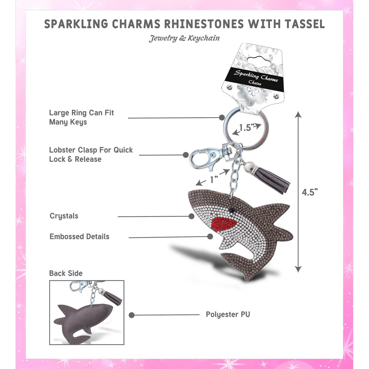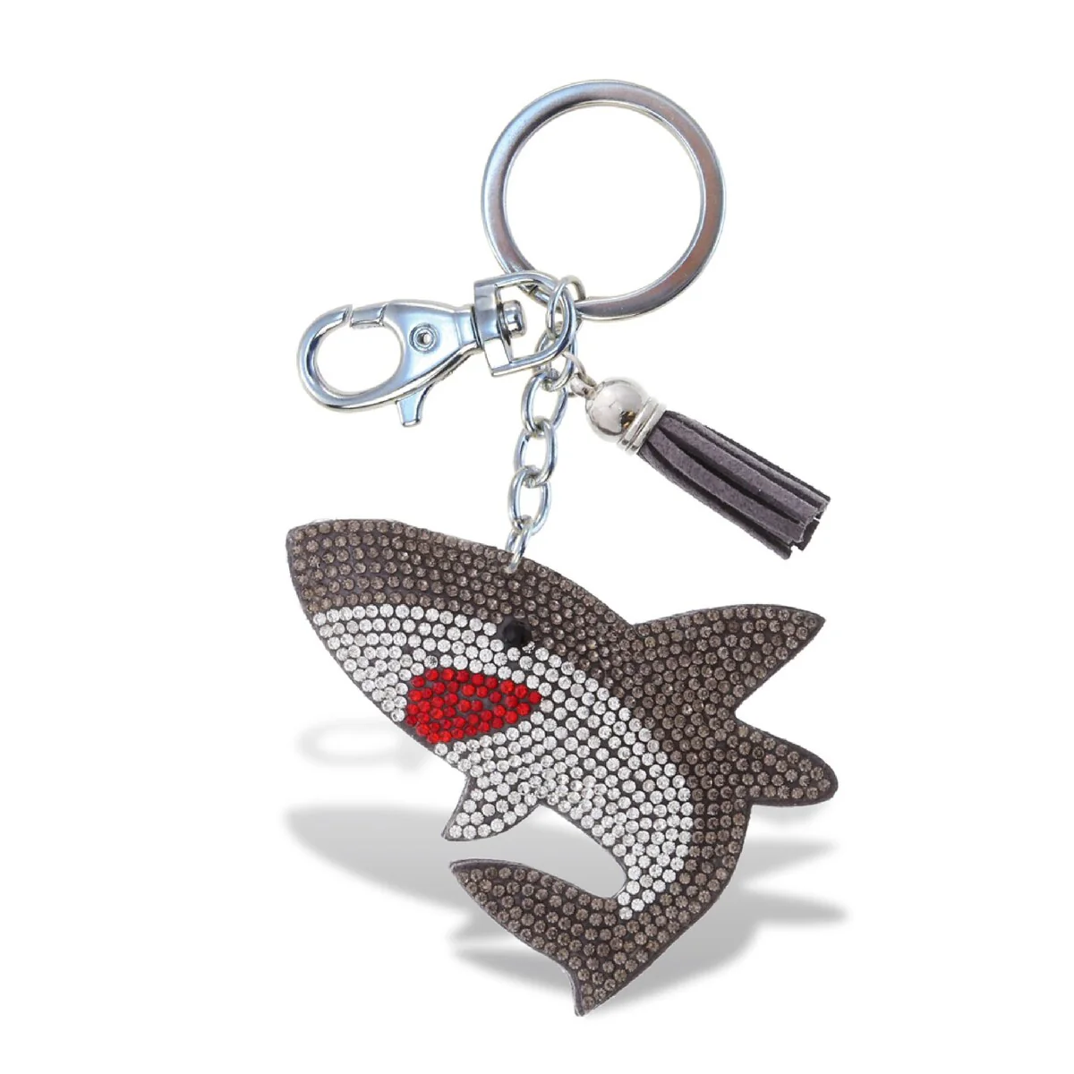 Aqua79 Shark Keychain - Grey Sparkling Rhinestones Charm with Tassel - 3.5 x 2.75 x 0.25 inches