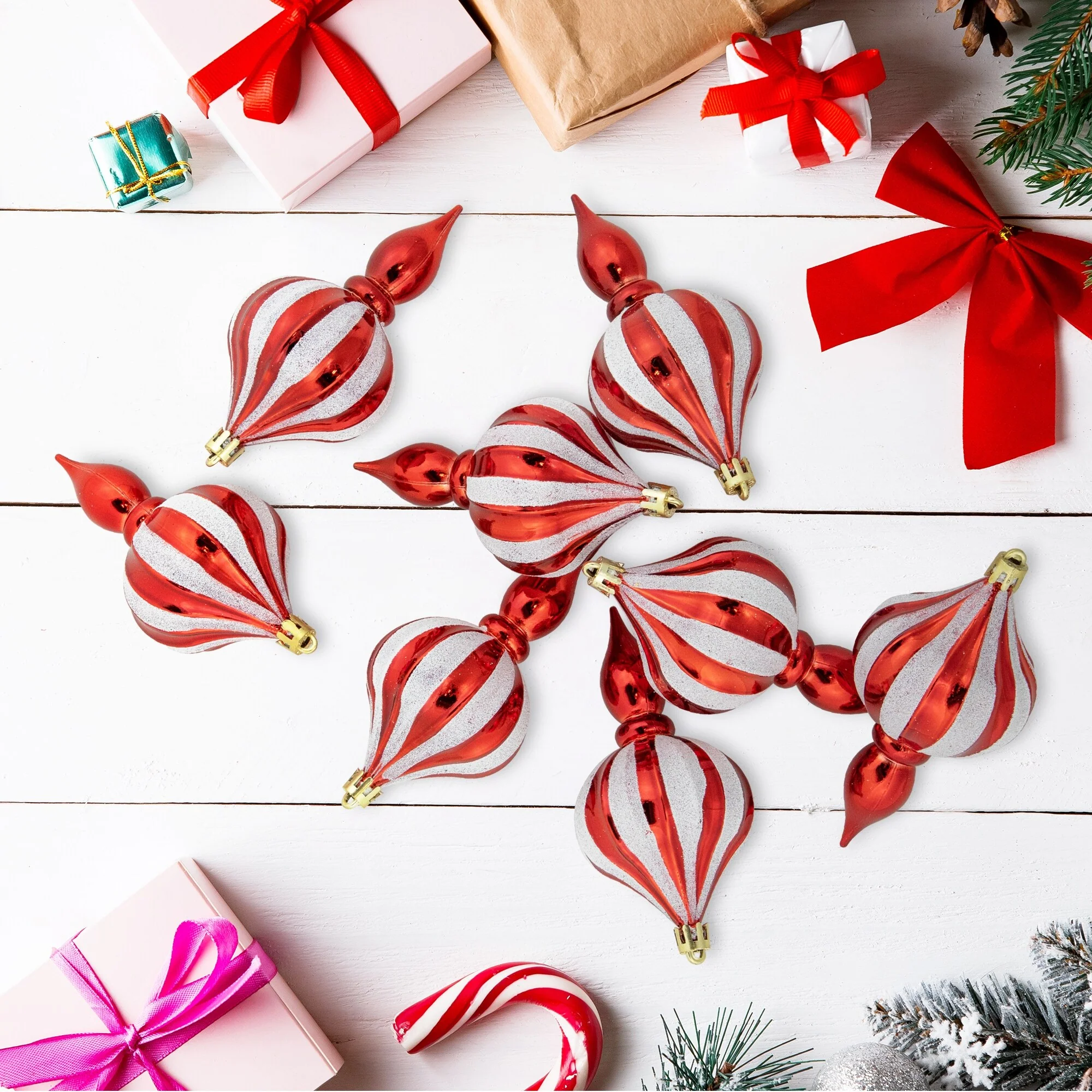 8-Count Red and White Shatterproof Finial Christmas Ornaments, 6"