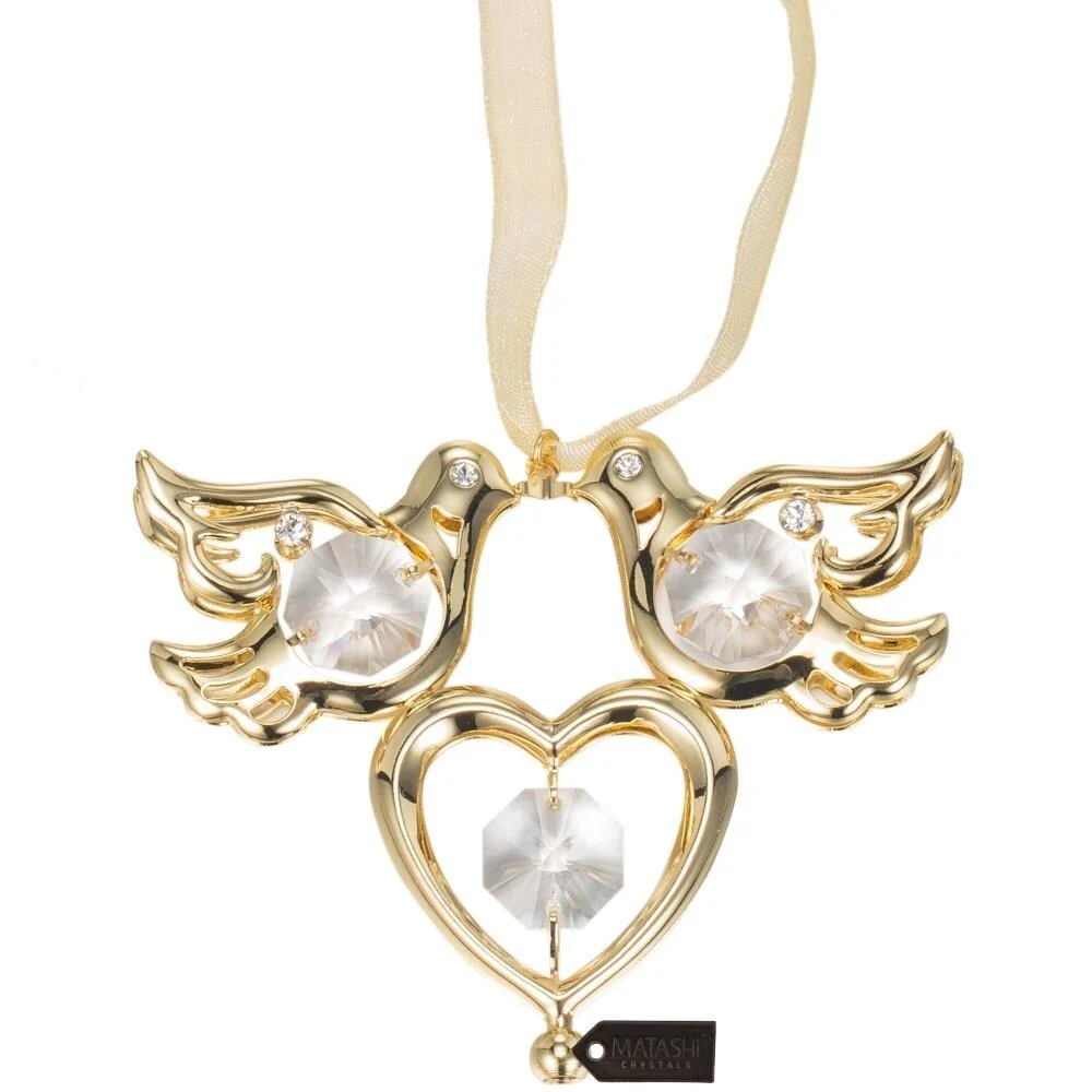 Matashi 24K Gold Plated Love Birds Ornament with Genuine Matashi Crystals