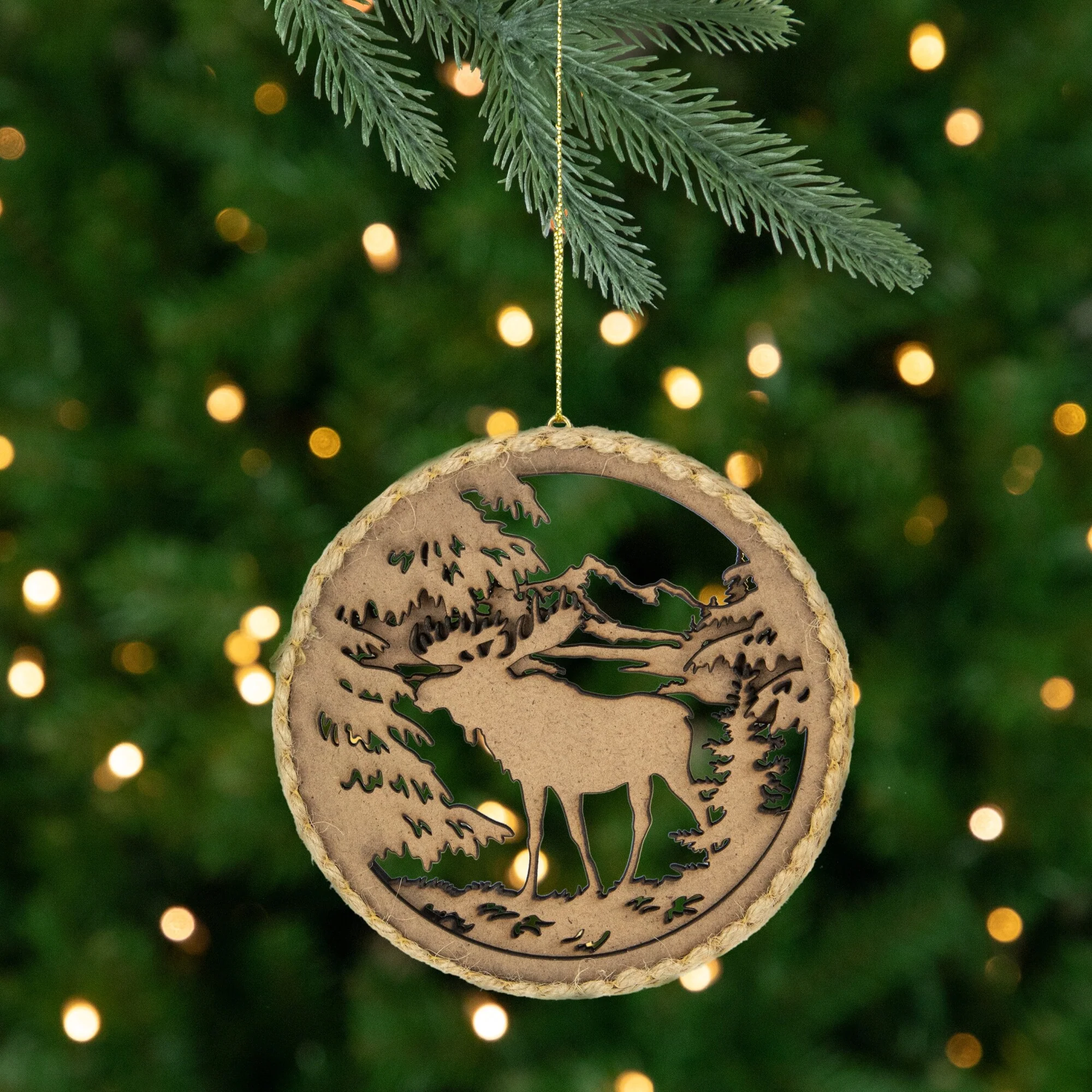 4.25 in Moose with Forest Trees Disk Christmas Ornament, Brown