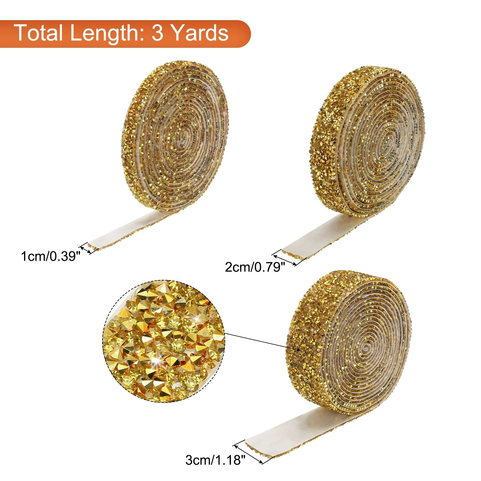 3 Roll 9 Yards Self Adhesive Crystal Rhinestone Diamond Ribbon