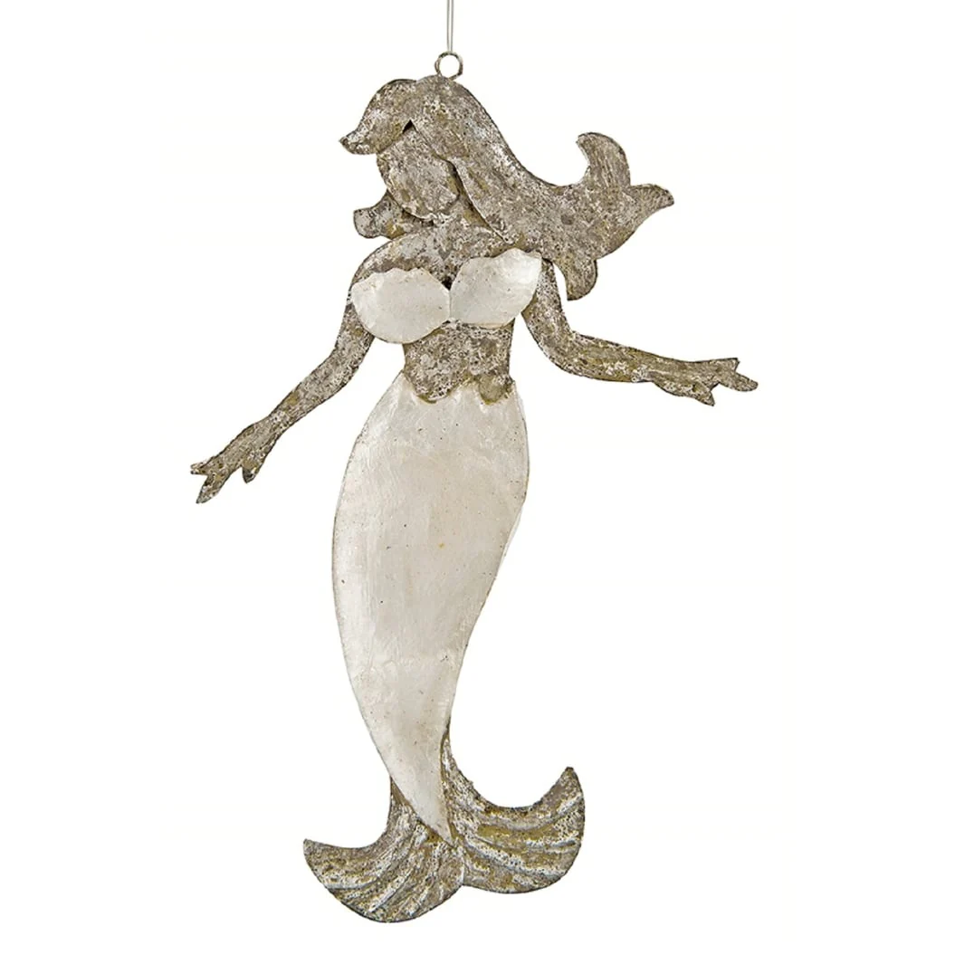 Shimmery Mermaid Capiz Shell Christmas Holiday Ornament 6.75 Inch - White