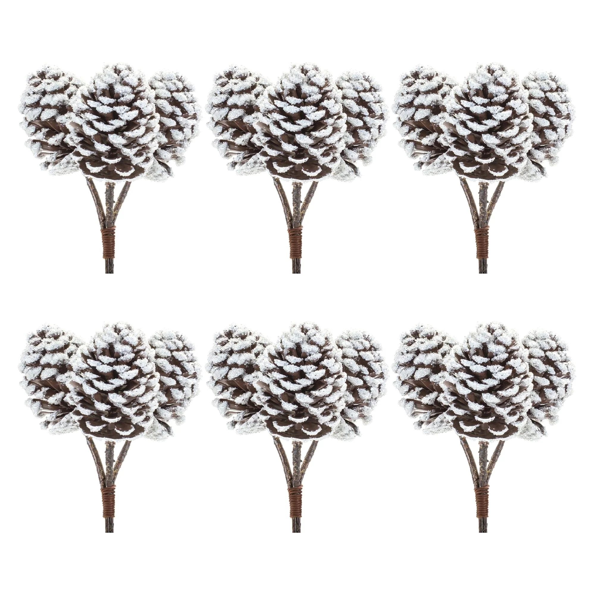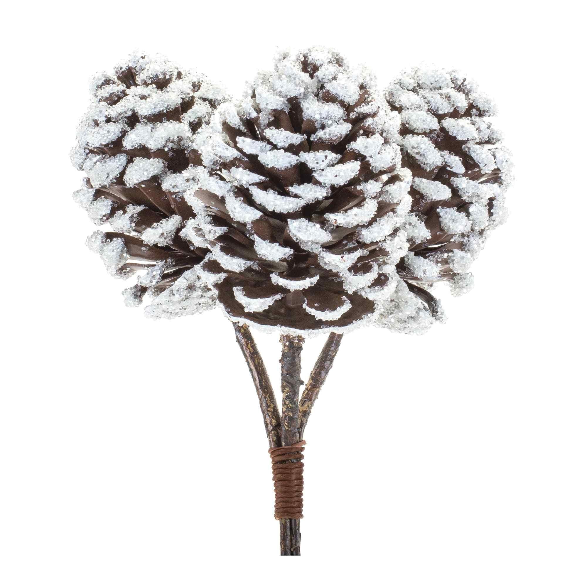 Flocked Pinecone Artificial Christmas Bundles 11" Brown White Set of 6