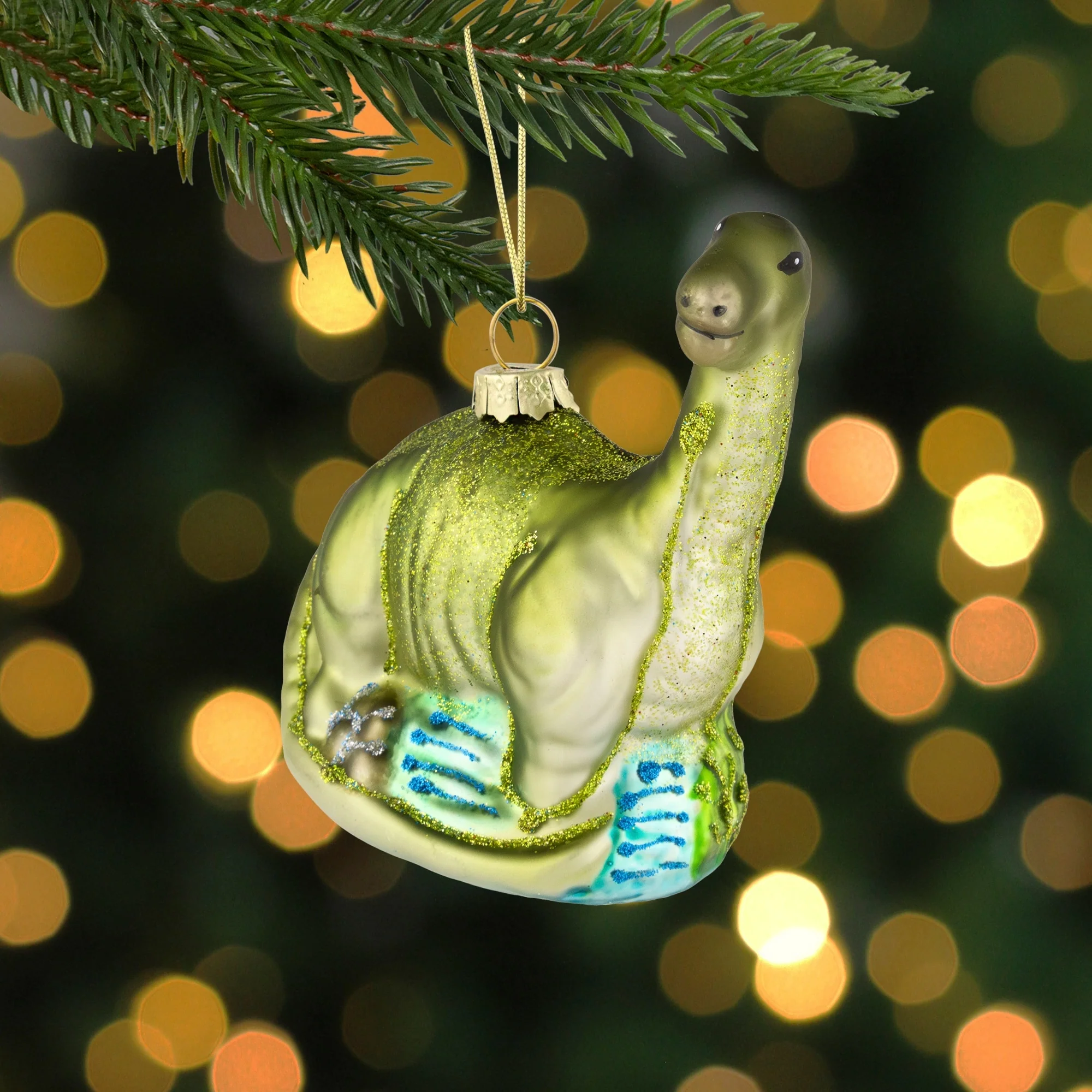 4" Glittered Brontosaurus Dinosaur Glass Christmas Ornament