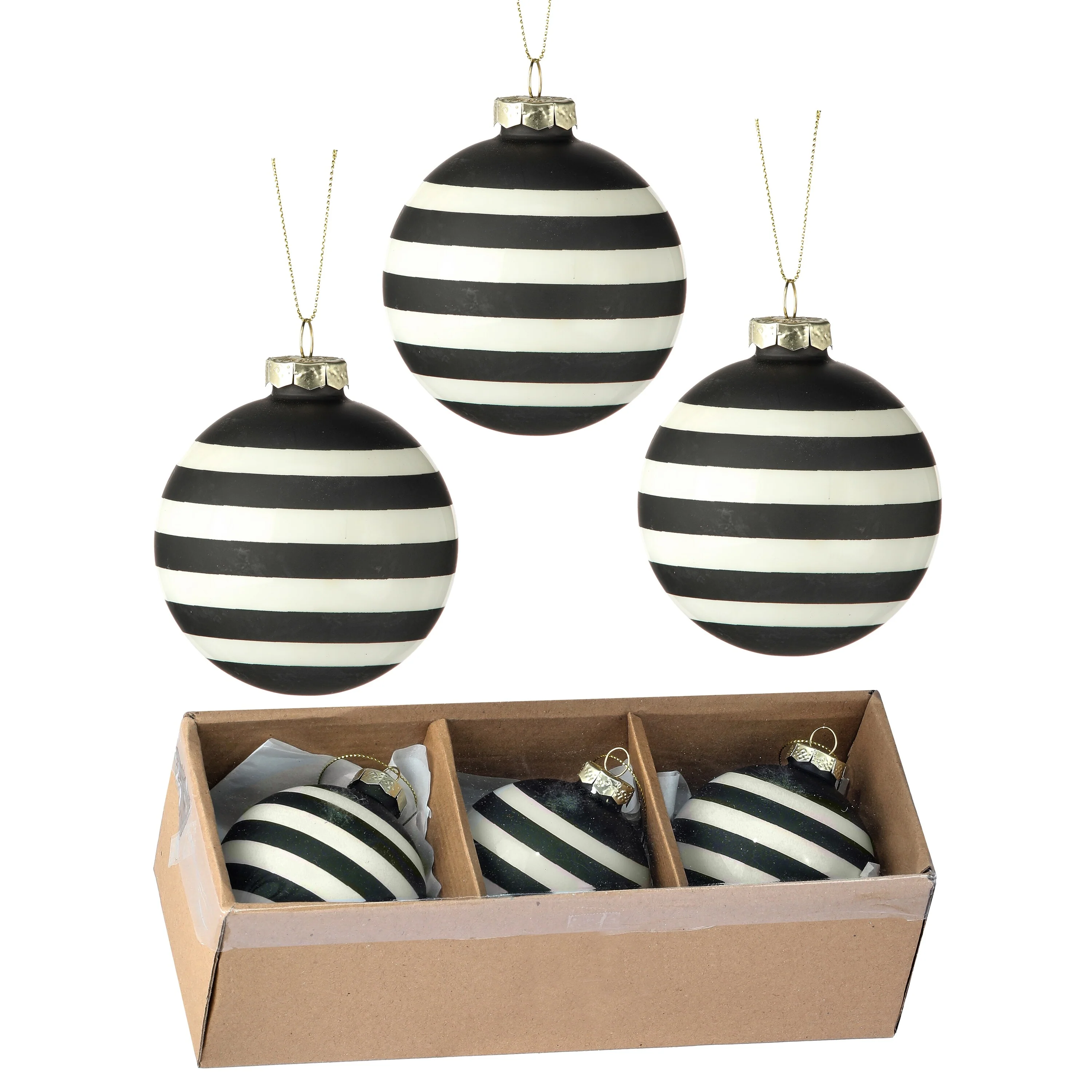 3" Glass Stripe Halloween Ball Ornament Box of 3