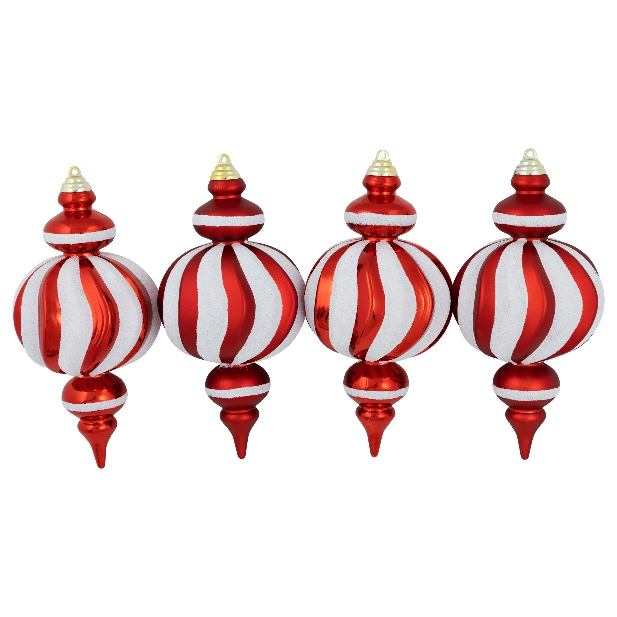 Shatterproof Commercial Size Finial Christmas Ornaments - 10" - Red and White - Set of 4