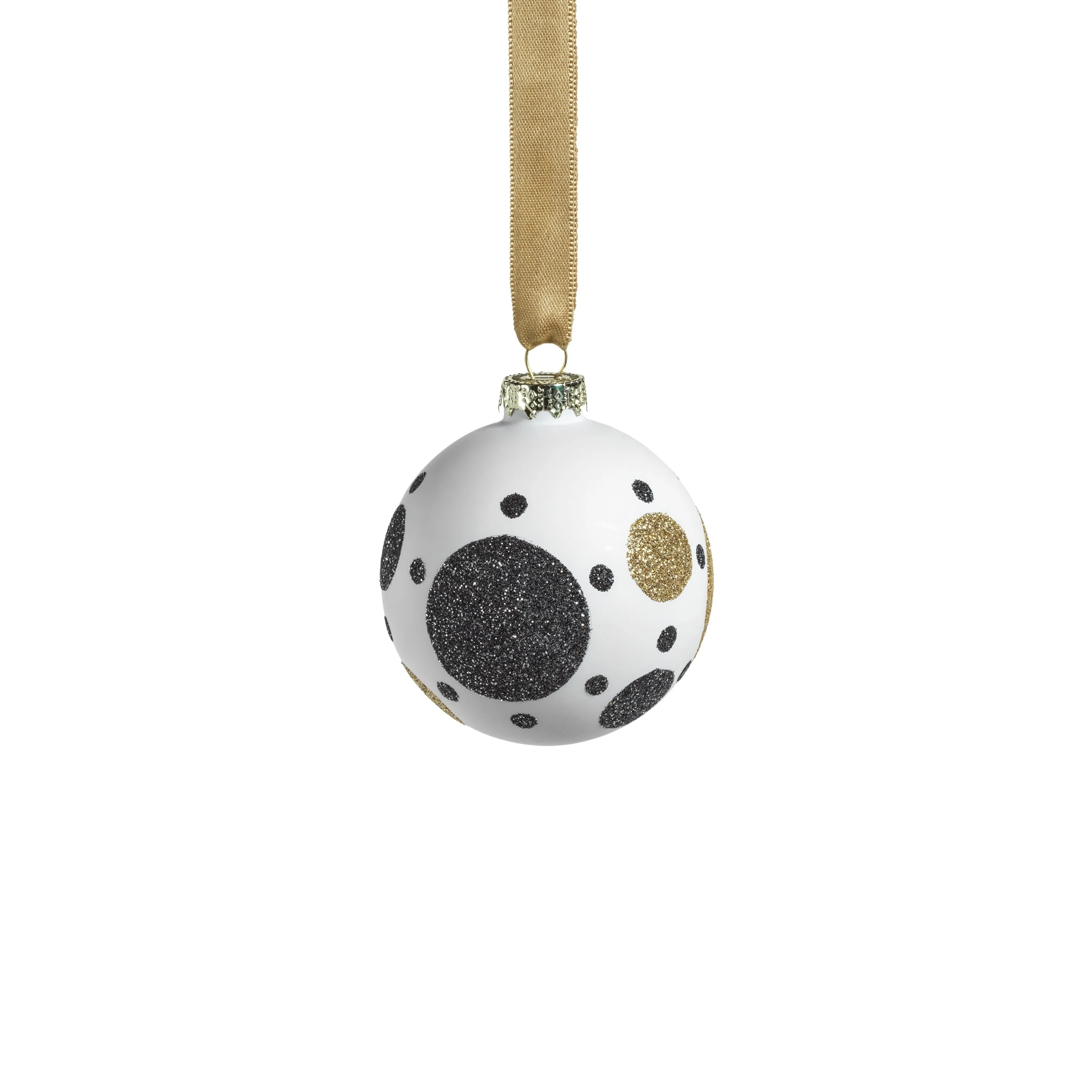 White Glass 3.25" Ball Ornaments with Black & Gold Pattern, Set of 6