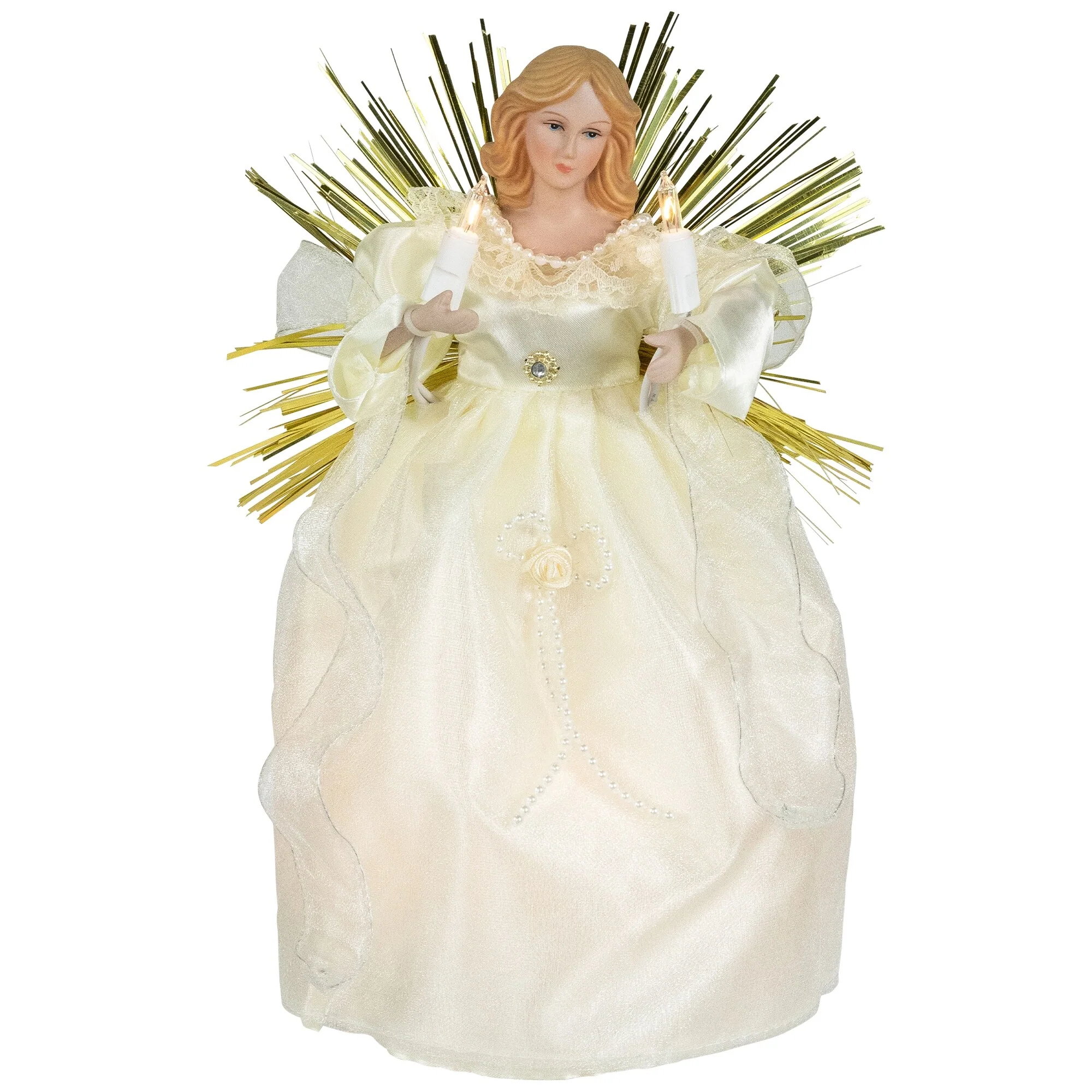 Angel with Candle Lighted Christmas Tree Topper - 10.5” - Gold - Clear Lights