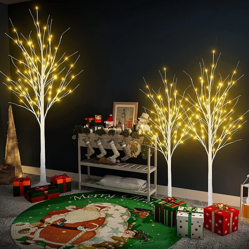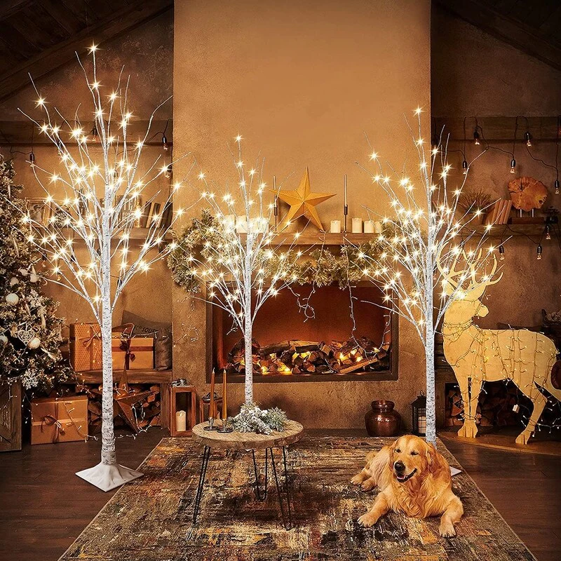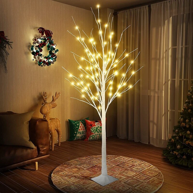 Ready for a brand New Year? Excited for the Christmas holiday? Now it’s time to fill your home with The White Birch Tree Set to enjoy a magical winter moment! Crafted with high quality, durable PVC with stable base of square stand and sturdy trunks, the bendable branch can be customized at any shape. Birch tree is quite beauty, natural birch tree bark texture and soft warm white fairy light looks pretty, decoration to your windows display by adding your favorite mementos or gift cards, bring a warm atmosphere into your family, creating a warm, joyful and romantic atmosphere for you.