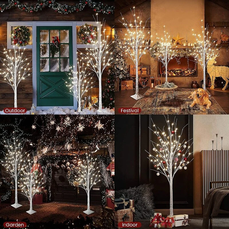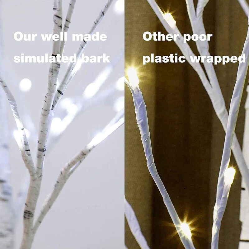 🎄Durable material: Premium white birch tree is different from the cheap one that is only wrapped with white plastic adhesive tape. It is covered with adhesive tape, artificial bark, and hand-painted bark texture which make it the same as real. Crafted with high-quality PVC with waterproof led light, energy-saving, and long life span which up to many years in the good condition.