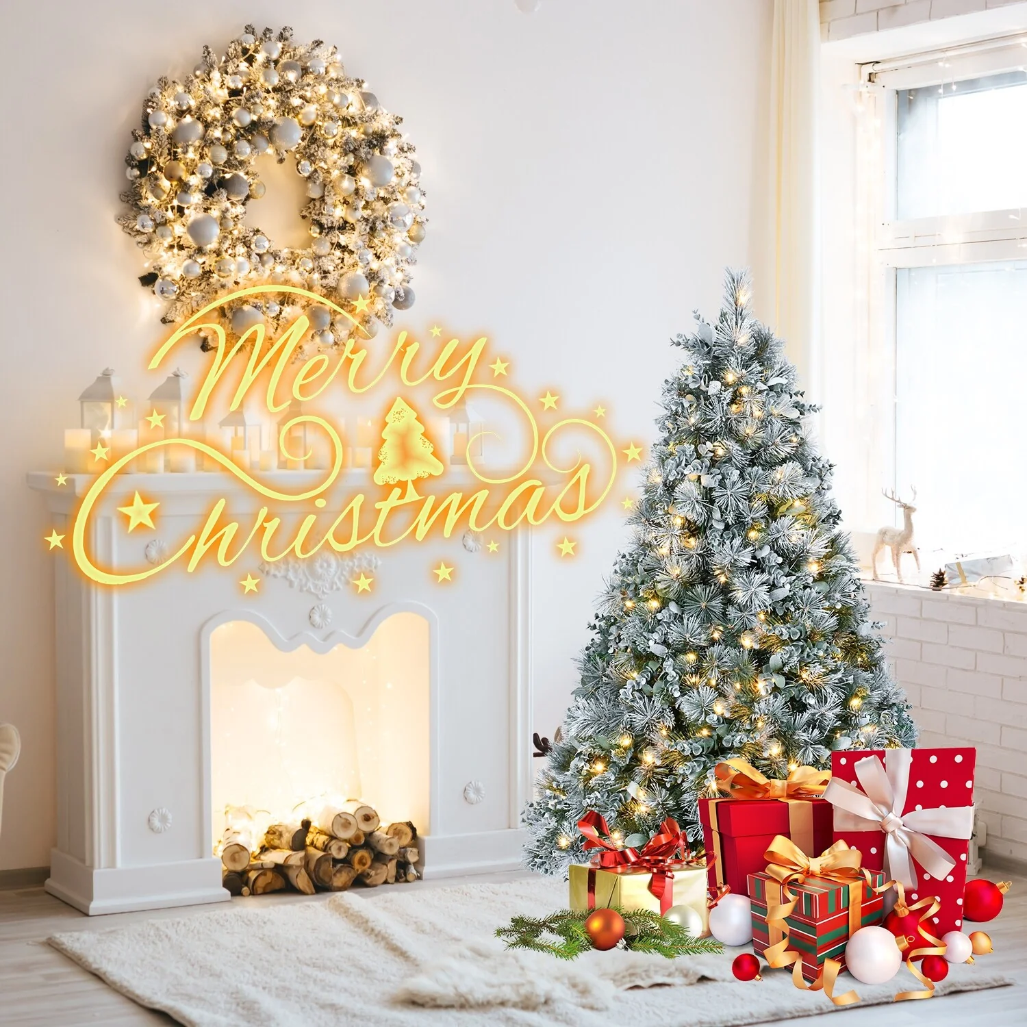 Full & Natural Look with 404 Branch Tips - With 404 thick, snow-dusted tips, the tree delivers a lush and realistic appearance—perfect for cozy winter vibes in living rooms, entryways, or offices.
