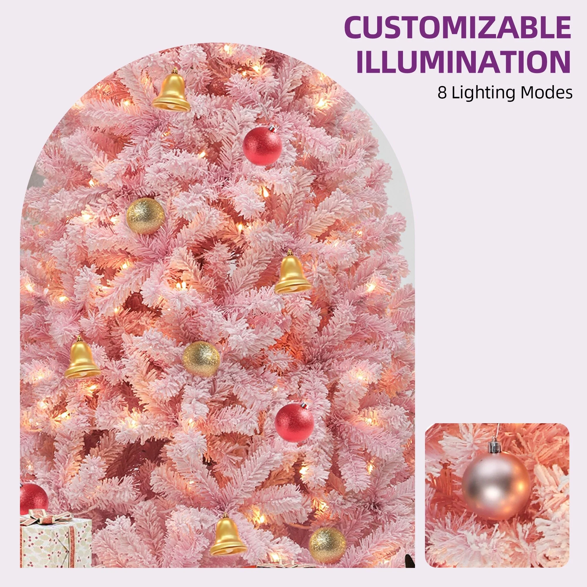 This Christmas tree features a stunning pink hue that adds both warmth and elegance to your holiday decor, creating a sophisticated festive atmosphere. There are 8 modes of light, switching between strobe and constant light. With just one click, adjust the lighting to suit any occasion, from cozy family gatherings to lively parties, creating the immersive ambiance. Its modular design makes disassembly quick and easy, and it folds flat for simple storage, saving you time and space.