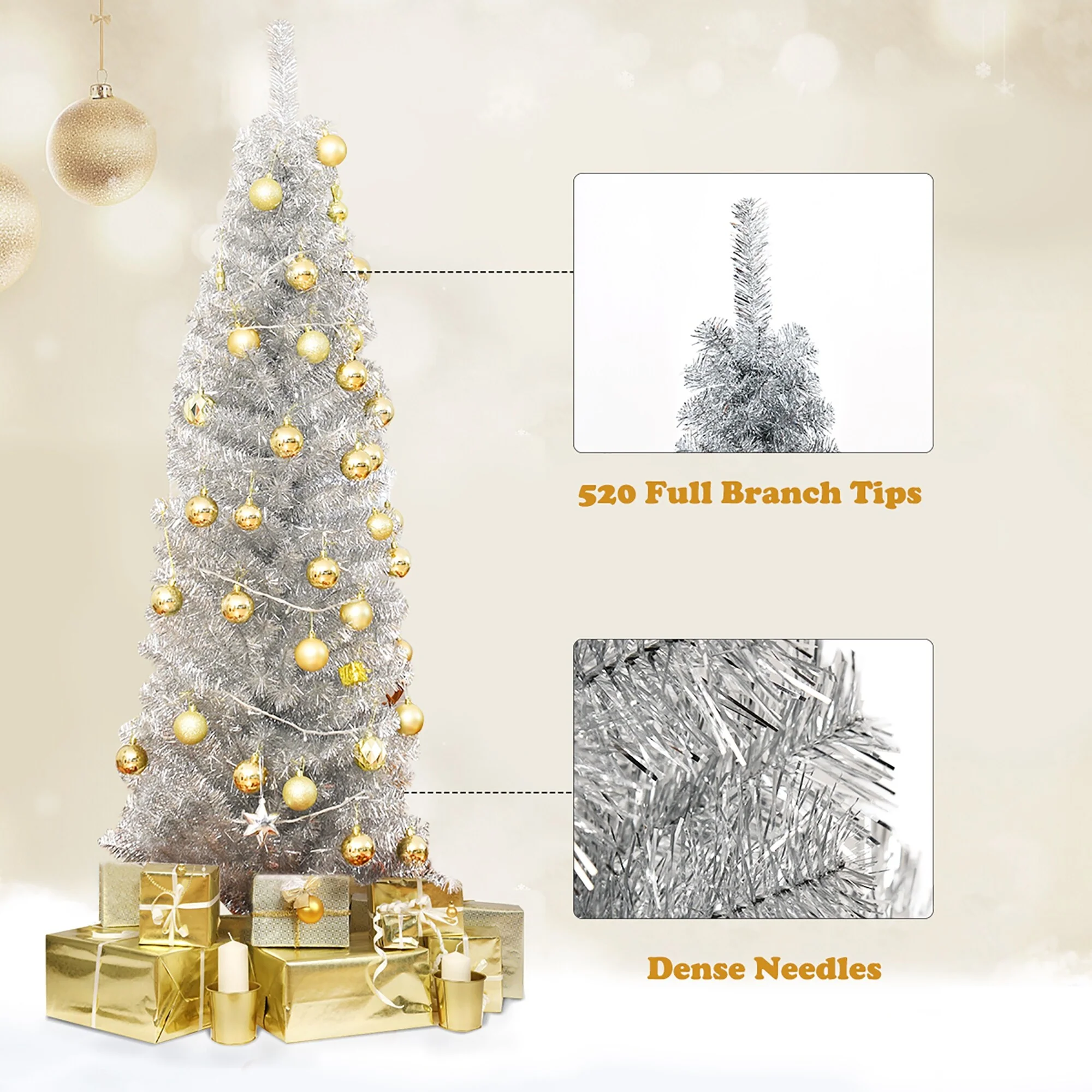 Our brand new 6ft Artificial Christmas tree features slim pencil design, which is great for display in corners, small rooms and areas with limited floor space. The tree is made of fade and crush resistant PVC needles, appears fresh-cut. It is perfect for indoor and outdoor decoration at Christmas for your home.